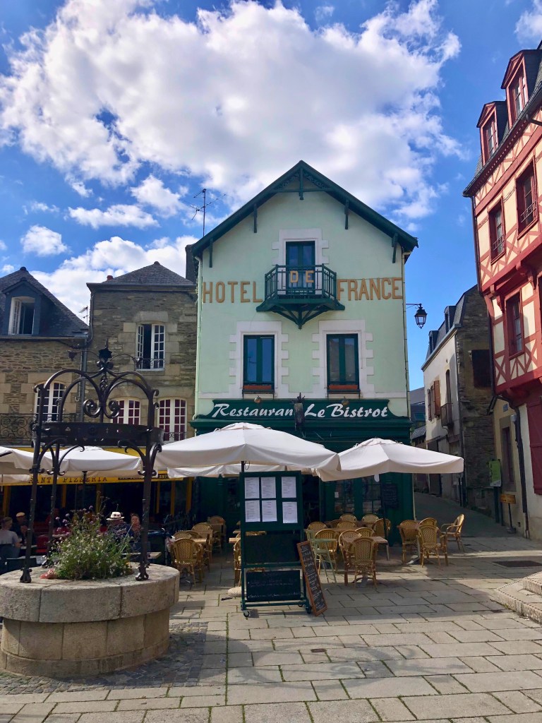 Le premier village que je souhaite vous faire découvrir est celui de Josselin, vieux de plus de 1000 ans et dont l’histoire gravite autour du château, l’un des plus beaux de la région. Il a été remanié à différentes époques, mais c’est au XVIe siècle que la façade Renaissance est construite par Jean II de Rohan. Le château borde la vallée de l’Oust et il abrite aujourd’hui le musée de poupées et jouets dans ses écuries. On peut d’ailleurs parcourir le monument en visite libre à 7€ ou en visite guidée à 9€, ce qui donne accès à des pièces supplémentaires.