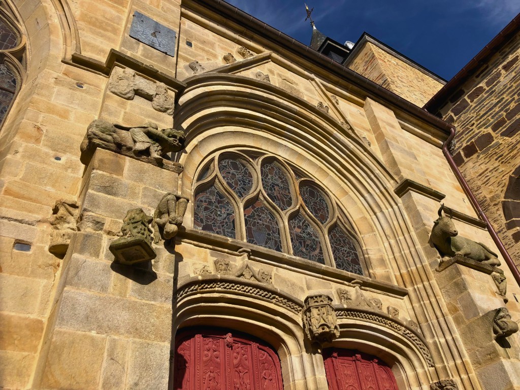 Commençons par le sommet de la commune avec le château du XIIe siècle, ses remparts et ses tours qui dominent le vieux bourg. Aujourd’hui, le château originel est complété d’un édifice plus récent. Celui-ci a repris certains éléments gothiques et Renaissance, après que les révolutionnaires aient détruit une partie de l’ancien château. On trouve également à cet endroit le Naïa museum sur les arts de l’imaginaire (plein tarif de 6€), dont le nom fait référence à la sorcière Naïa qui vivait sous le château autrefois.