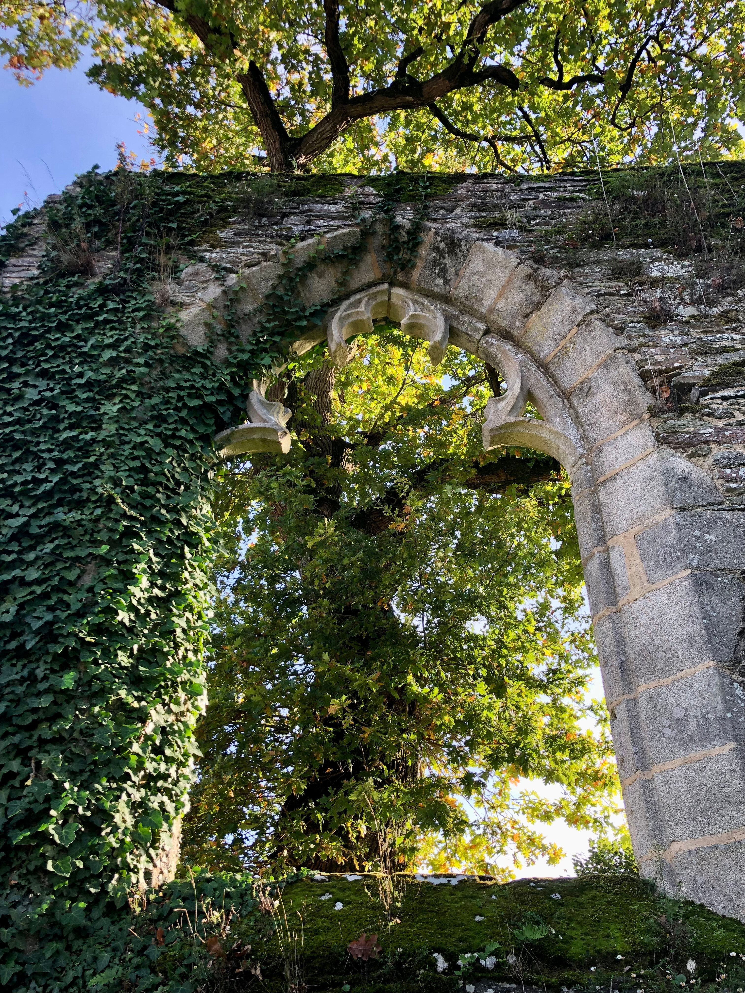 De plus, un autre édifice suscite l’intérêt mais il est légèrement excentré du bourg, c’est la Chapelle de la Madeleine. Selon la météo, on pourrait y voir les restes d’un lieu fantôme mais il s’agit des ruines de la chapelle romane dont seul le mur-clocher tient encore debout. C’est un haut-lieu d’histoire, l’édifice a été témoin d’événements comme la guerre de Cent Ans et la Révolution française, mais il sera laissé à l’abandon à la moitié du XIXe siècle. La nature a repris ses droits et il ne manquerait plus que du brouillard et un chat noir en période d’Halloween pour imaginer les scénarios les plus fous.