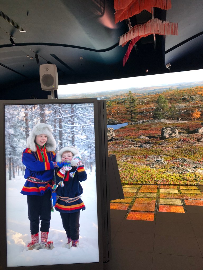La seconde salle est imaginée en deux phases : en longeant les murs, vous aurez une représentation des mois de l’année en photos et l’opportunité de voir la Laponie comme jamais. Puis au centre de la salle, vous avez encore des écrans interactifs, des casques audio et de nombreux objets du quotidien exposés. Mon coin préféré est celui avec les panneaux de verres au sol, qui représentent les différents types de végétations de la région en toute saison !