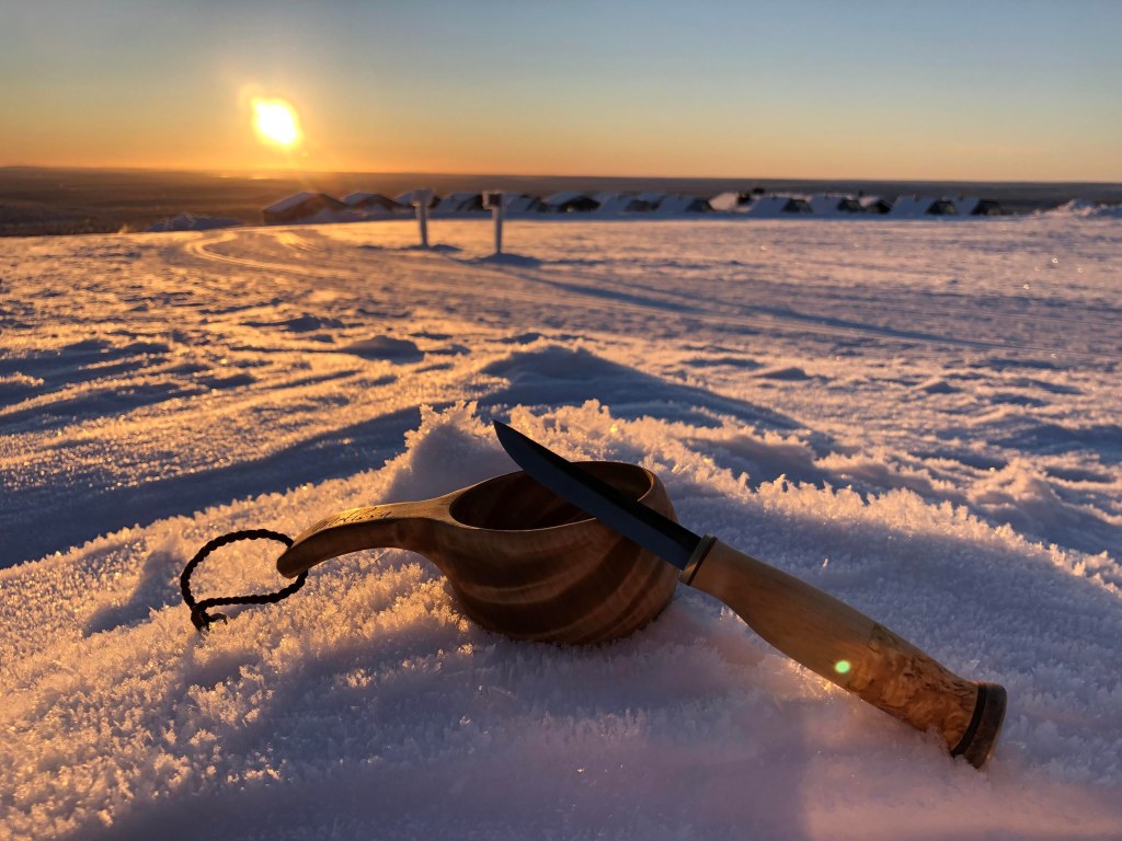 Parmi les objets d’artisanat réputés, on peut citer les très beaux couteaux Samis, dont les manches sont faits à partir de bois de bouleau ou bois de renne et on peut également retrouver du cuir de renne ou d’élan. Les lames sont en acier inoxydable, lisses ou frappées à la main. Vous retrouverez aussi des petites tasses en bois de bouleau que l’on appelle « kuksa » en finnois. C’est un objet utilisé au quotidien par les Samis lorsqu’ils partent en extérieur chasser ou pêcher. Certaines peuvent être incrustées de bois de renne ou d’élan, gravées avec un motif ou votre prénom, il y en a de toutes sortes et de tous tarifs aussi !