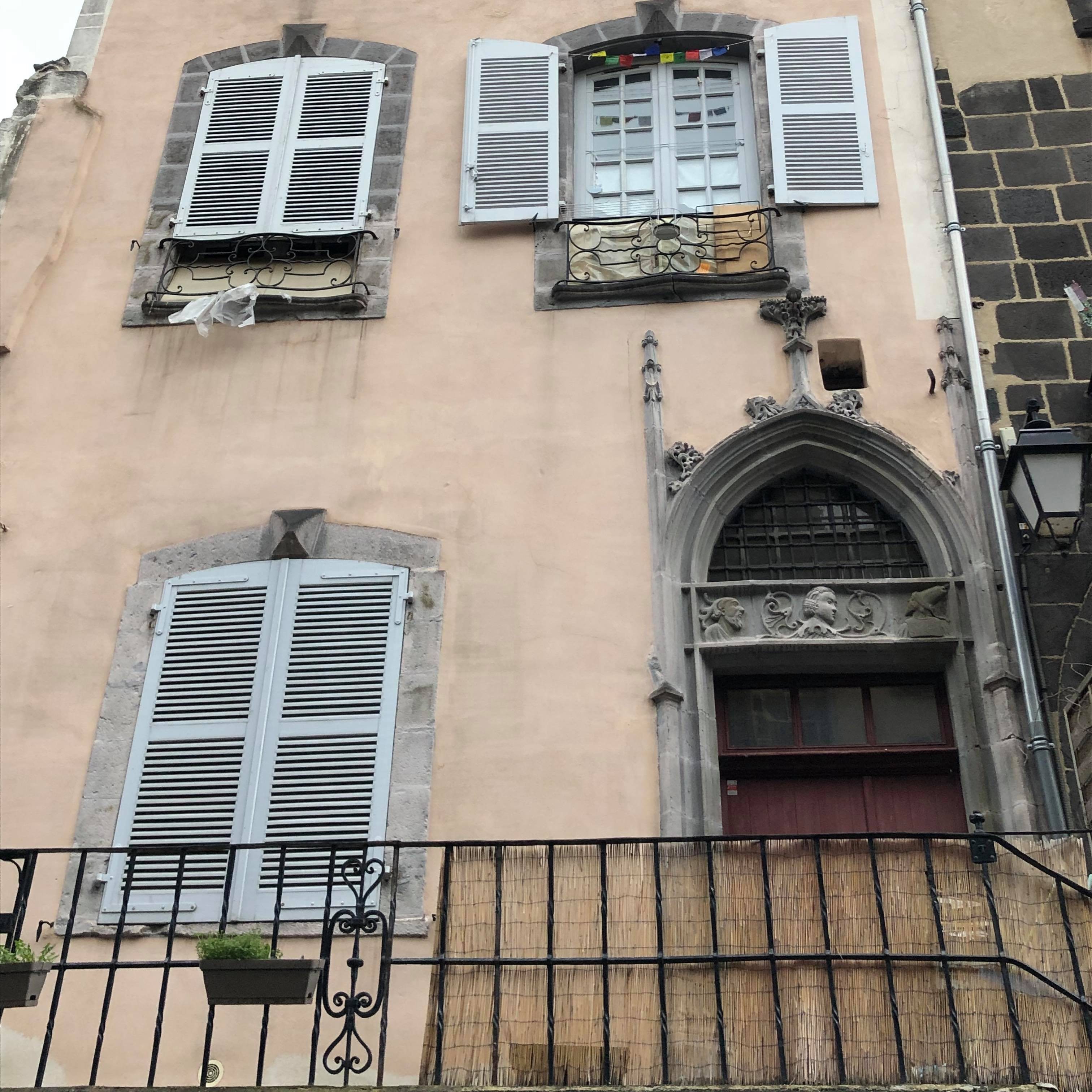 En déambulant dans les rues adjacentes, vous tomberez nez à nez, ou plutôt nez à trompe, avec la curieuse maison de l’Eléphant ! Elle doit son nom à l’animal peint au-dessus des baies géminées centrales au premier étage. On retrouve des arcs moulurés soutenus par des colonnettes à motifs végétaux et alignés, ainsi que la sculpture d’un visage couronné dont on ne connaît pas l’origine, ni celle du propriétaire, probablement un personnage important ou dauphin d’Auvergne.