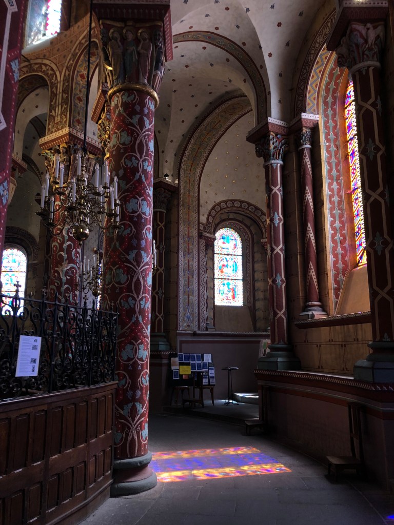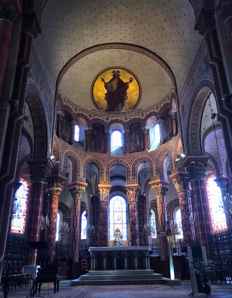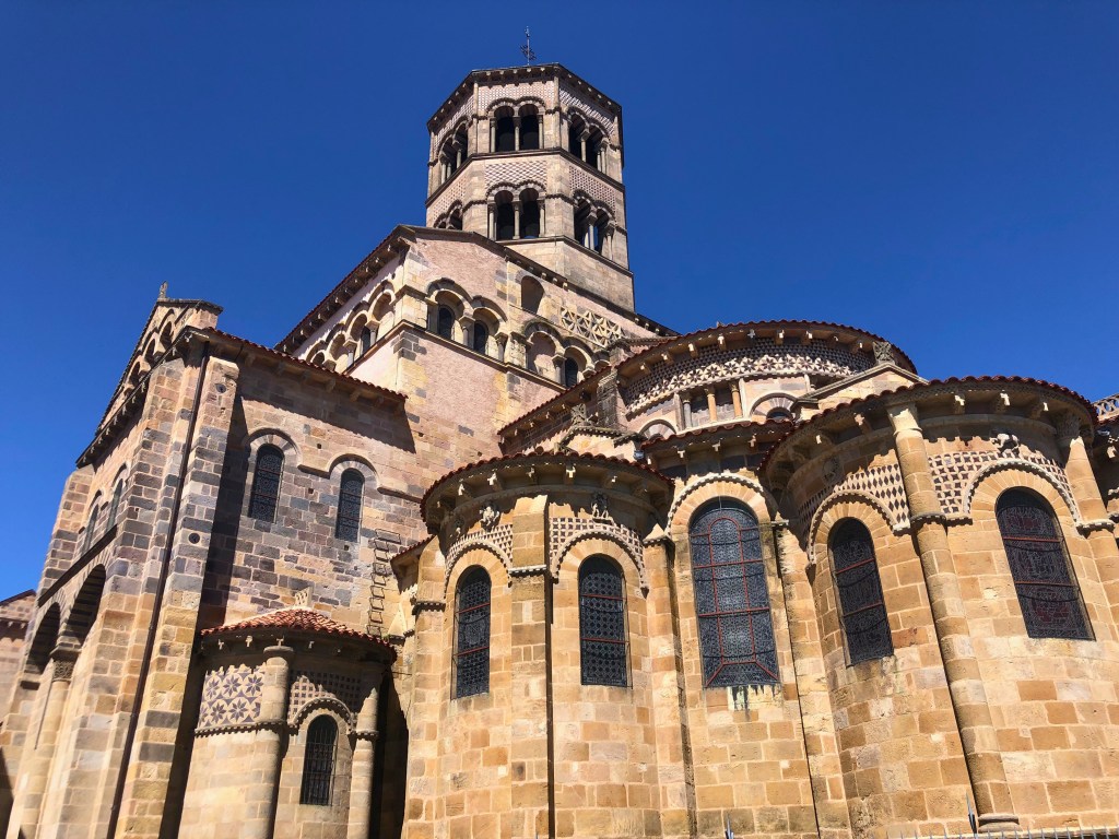 D’autre part, il existe d’autres petites églises disséminées dans la ville comme Saint-Pierre-des-Minimes ou Notre-Dame-de-Montferrand, mais je voudrais m’attarder sur la charmante basilique Notre-Dame-du-Port, classée aux monuments historiques. Cet édifice roman, en pierres claires d’arkose, doit son nom au quartier du « portus » en latin qui signifiait l’entrepôt, donc le lieu où transitaient les marchandises à Clermont-Ferrand.
