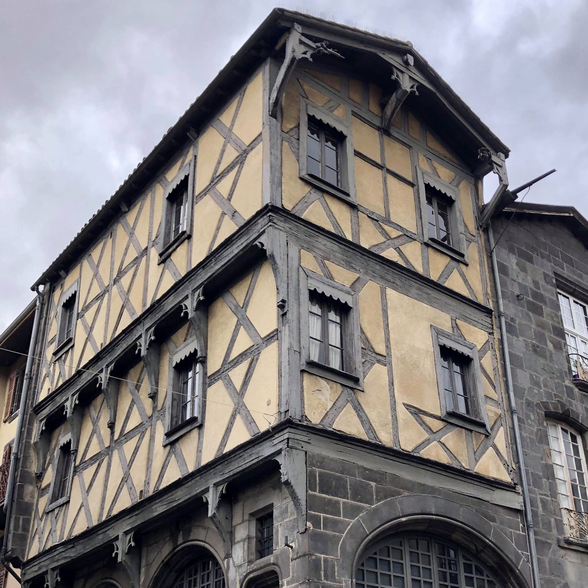 Montferrand a gardé les marques de son époque médiévale et Renaissance avec de nombreux hôtels particuliers à l’architecture remarquable en pierre de Volvic, cette pierre de lave noire assez poreuse mais très résistante et idéale pour la construction. Parmi ces édifices, vous pourrez admirer la drôle de maison de l’Apothicaire, maison à pans de bois et à encorbellements (chaque étage avance un peu plus sur la rue) et si vous observez bien sous le toit vous pouvez apercevoir la sculpture d’un apothicaire, seringue en main, prêt à piquer le postérieur de son patient sculpté en face.