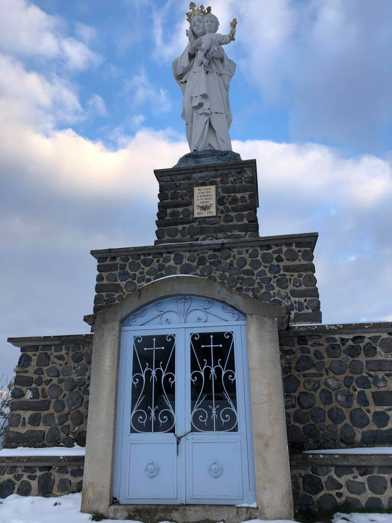 Néanmoins, l’immanquable d’Usson c’est sa butte volcanique, haute de 639m, que l’on peut gravir en traversant le village à l’aide d’un petit sentier, au cours duquel vous découvrirez de magnifiques orgues basaltiques. Celles-ci sont issues d’une coulée de lave qui s’est solidifiée lentement sous la surface pour former ces prismes hexagonaux. Et au sommet de cette butte, une Vierge de 7m de haut trône sur une minuscule chapelle et fait face à la Chaîne des Puys au loin.