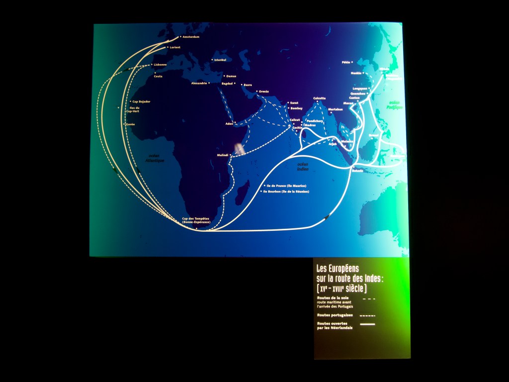 Dans l’aile nord de la cour principale de la citadelle se trouve le Musée de la Compagnie des Indes. Cette dernière fut créée en même temps que la ville de Lorient – en breton « An Oriant » – d’après la volonté de l’homme d’État Jean-Baptiste Colbert, sous le Roi Soleil. Ainsi, la Compagnie des Indes est une compagnie coloniale française dont le but est de rayonner sur l’Asie et profiter de nouvelles voies de commerce par le cap de Bonne Espérance, afin de suivre les routes de la soie et de la porcelaine.
