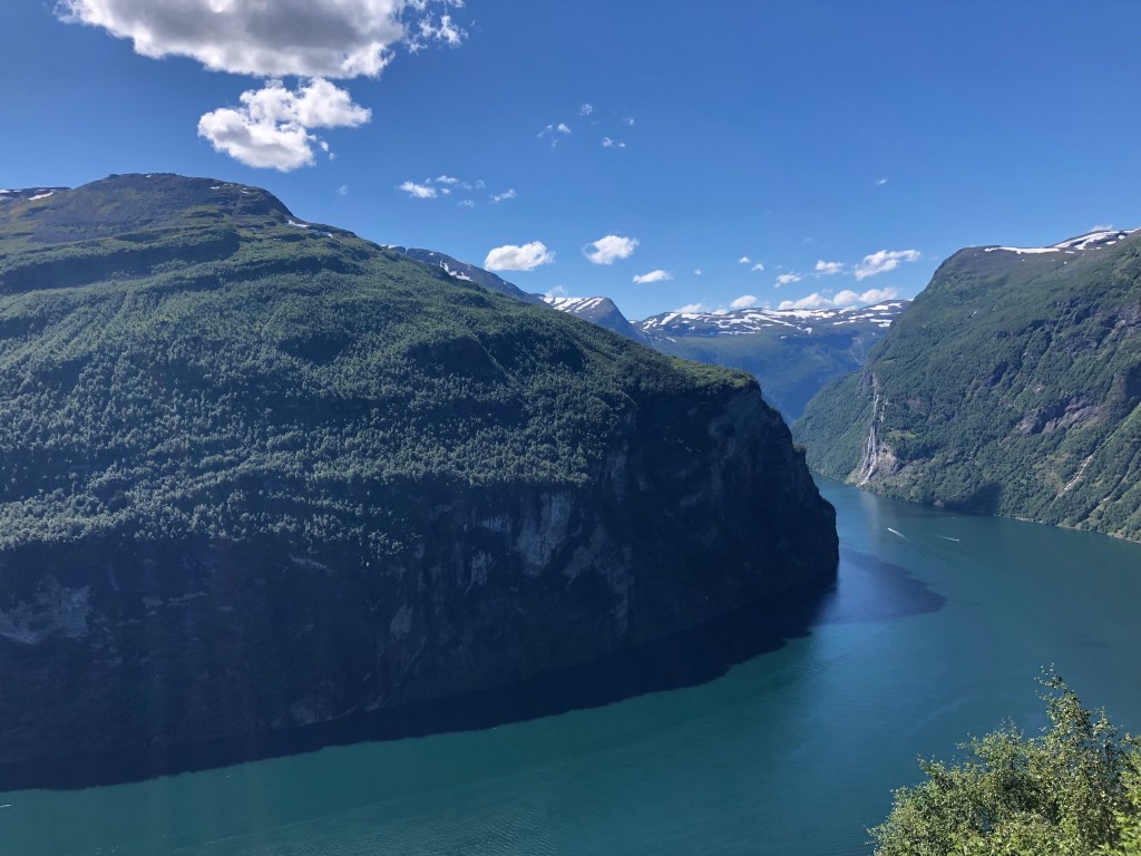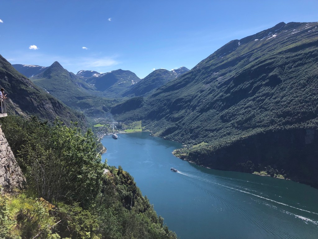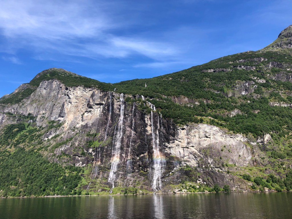 En concurrence avec le roi nous avons « La Perle des fjords » : Geirangerfjord. Egalement inscrit par l’UNESCO, ce fjord est sûrement l’un des plus connus et donc l’un des plus touristiques aussi. De nombreux paquebots de croisières y font escale presque tous les jours, déversant des milliers de vacanciers dans les minuscules villages au bout du fjord. Mais la meilleure manière d’en découvrir un est de réserver une mini-croisière que les compagnies norvégiennes proposent et certains des bateaux sont électriques. De quoi retrouver une certaine quiétude au milieu de ces paysages majestueux.