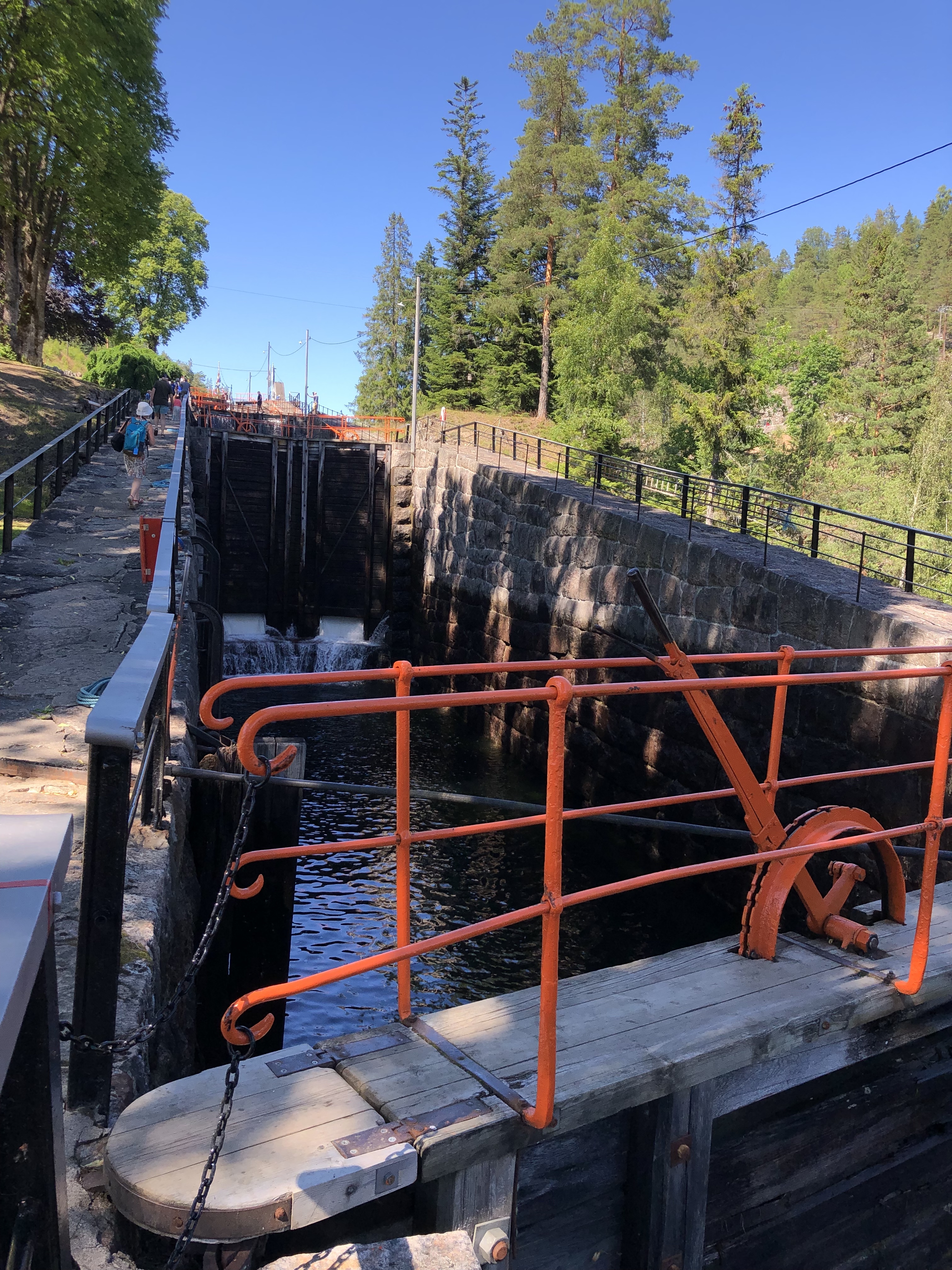 C’est encore l’une des rares écluses manuelles, dont l’ouverture est généralement assurée par de jeunes saisonniers. Il est également possible de faire une partie ou la totalité du canal en embarquant sur l’un des bateaux quotidiens : le M.S. Victoria ou le M.S. Henrik Ibsen. Vous pouvez consulter les horaires ici.