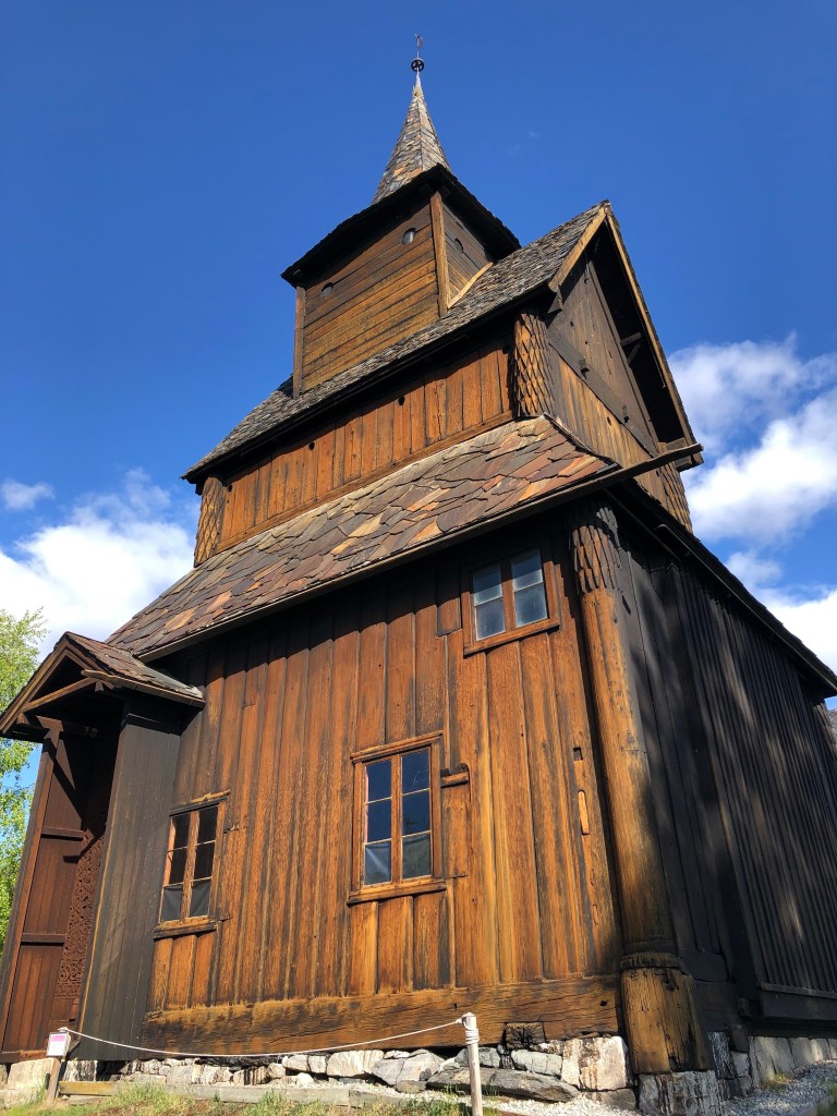 Les typiques églises en bois debout ou « stavkirke » sont apparues lors de la christianisation, à la fin de l’ère viking, et dont la structure est tenue par des piliers de bois verticaux. Ces églises résistent très bien aux éléments de la nature, car elles sont recouvertes d’une sorte de goudron naturel qui leur donne cette couleur sombre.