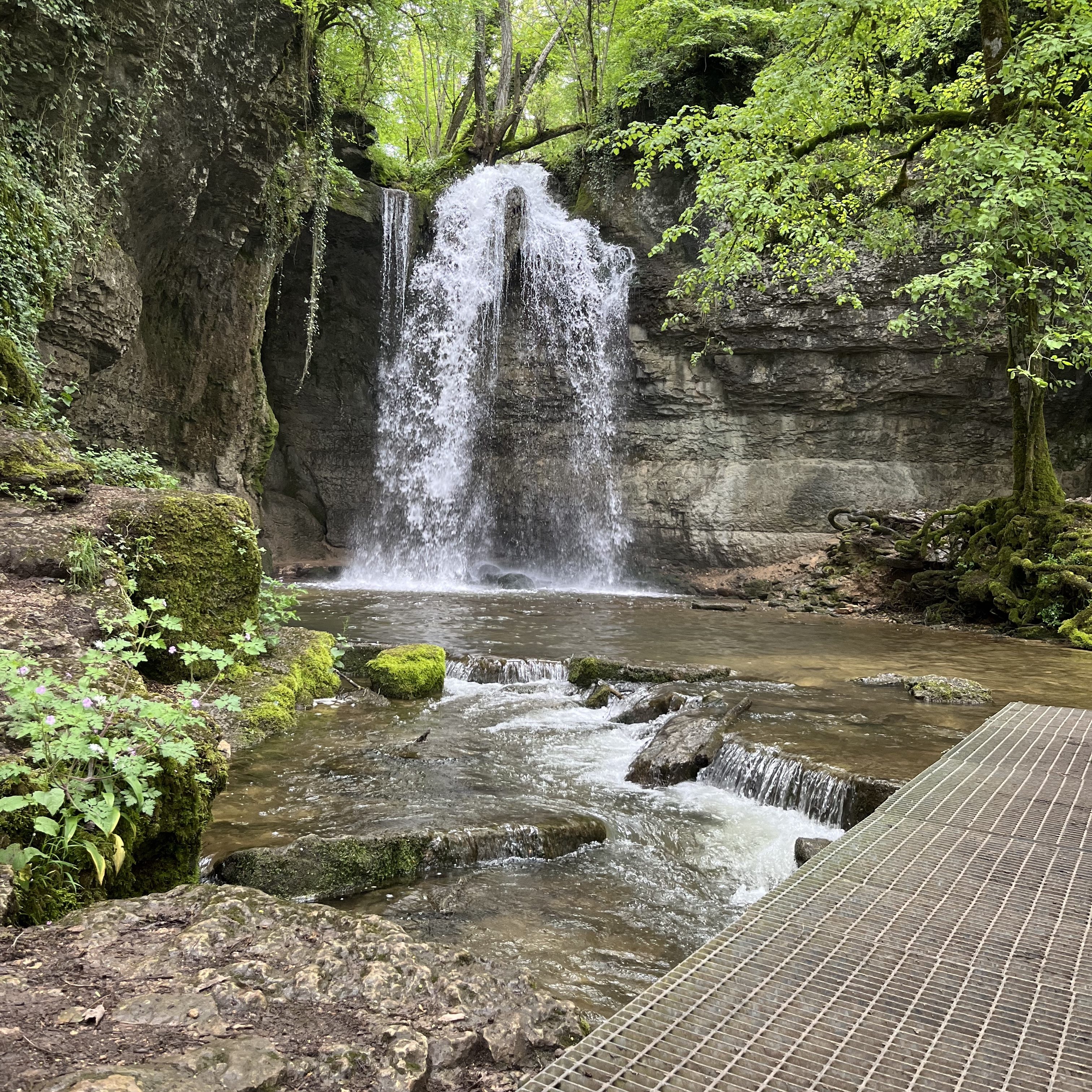 Une fois que vous arrivez près de la cascade vous découvrez un écrin de verdure dans lequel l’eau chute d’une dizaine de mètres environ. Une petite passerelle permet d’enjamber le cours d’eau afin d’admirer les différents profils de la cascade et pour les plus téméraires, il est même possible de passer derrière la chute. Pour profiter de la cascade à son meilleur débit, il est préférable de s’y rendre au printemps ou à l’automne, alors qu’en été le lieu est quasiment à sec.