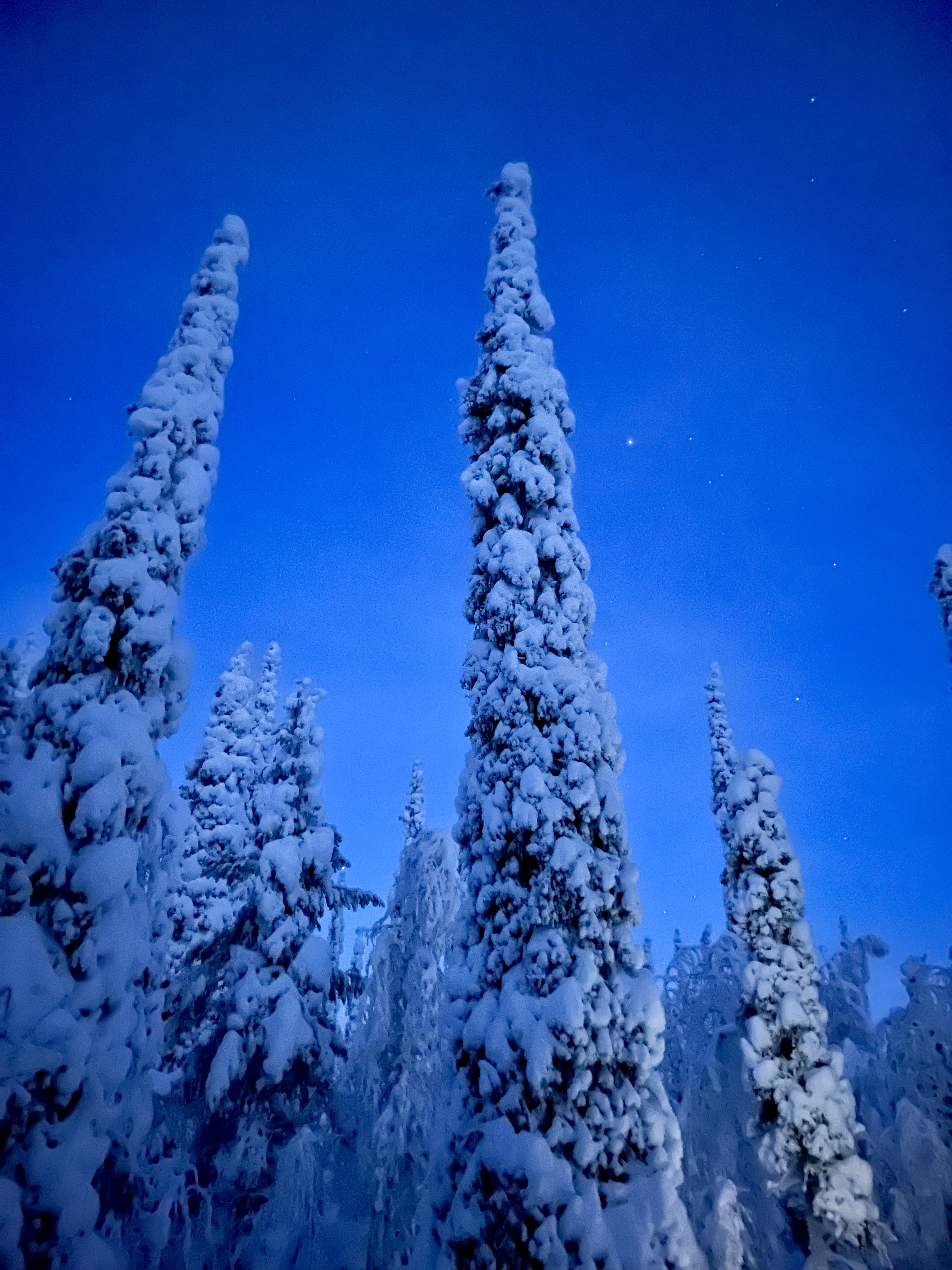 Le phénomène le plus perturbant de cette vie dans l’Arctique est celui de la nuit polaire. Mais de quoi s’agit-il ? C’est tout simplement la période de l’année pendant laquelle le Soleil ne se lève plus au-dessus de la ligne d’horizon, dû à l’inclinaison de la Terre et scientifiquement il ne fait plus jour. Plus on monte au Nord et plus la nuit polaire sera longue. Là où je vis, au plus court de l’année autour du 21 décembre, nous avons un semblant de luminosité entre 10h du matin et 13h en début d’après-midi. Pour le reste de la journée, la nuit est reine.