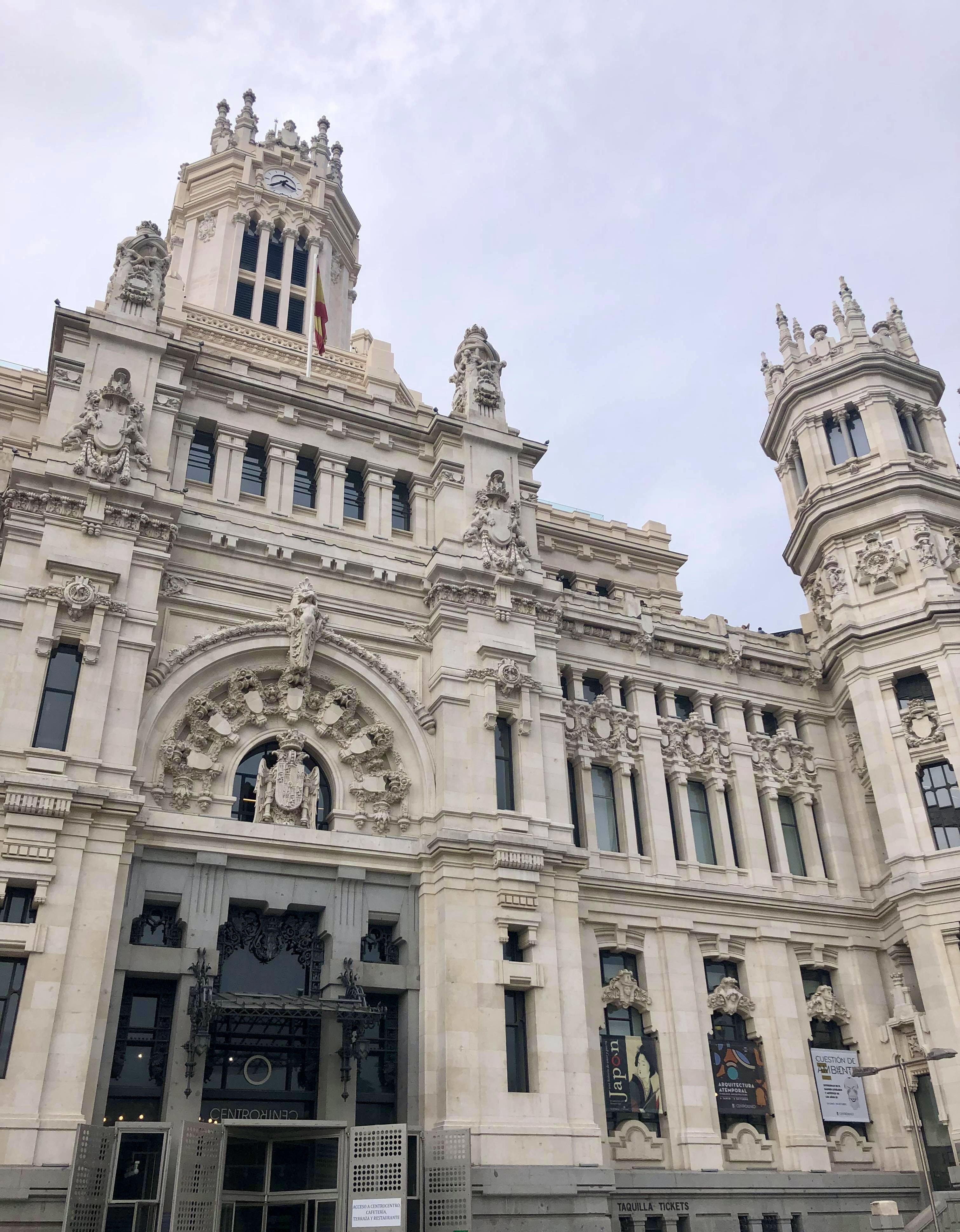 Dans le prolongement de la Gran Vía, se trouve la très longue Calle de Alcalá (11 kilomètres), ponctuée par plusieurs édifices dont le palais de Cybèle. Ce dernier ouvre ses portes en 1919 et répond à un style néogothique, en étant d’abord destiné à être le siège des communications espagnoles. Puis, c’est le siège de la mairie qui s’installe en ces murs, ainsi que le centre culturel CentroCentro, dont les expositions sont gratuites et où l’on peut découvrir la galerie de verre à l’intérieur de l’édifice. A son sommet, vous retrouvez un rooftop payant, avec cafétéria et boissons. Enfin, au centre de la place éponyme, vous pourrez admirer la magnifique fontaine de Cybèle pensée par l’urbaniste espagnol chargé de moderniser la capitale lors du XVIIIe siècle.