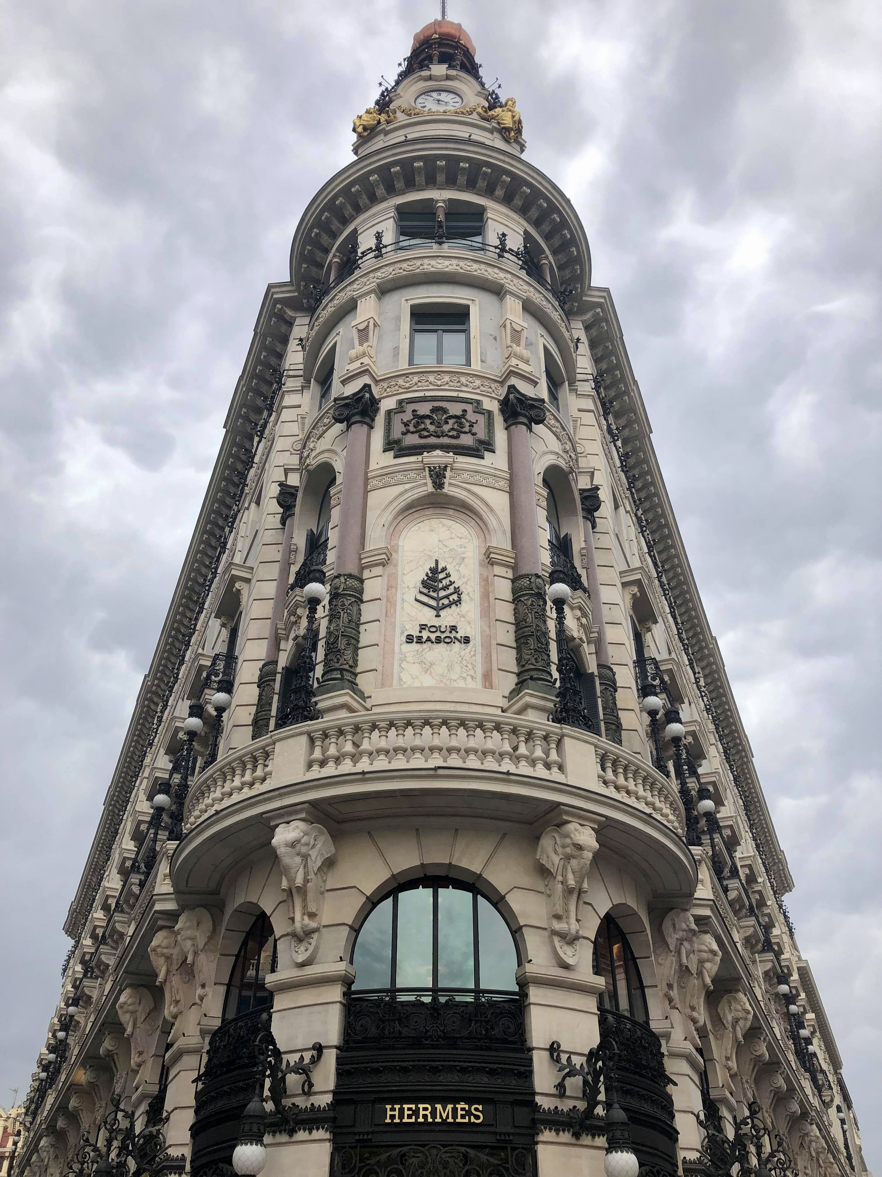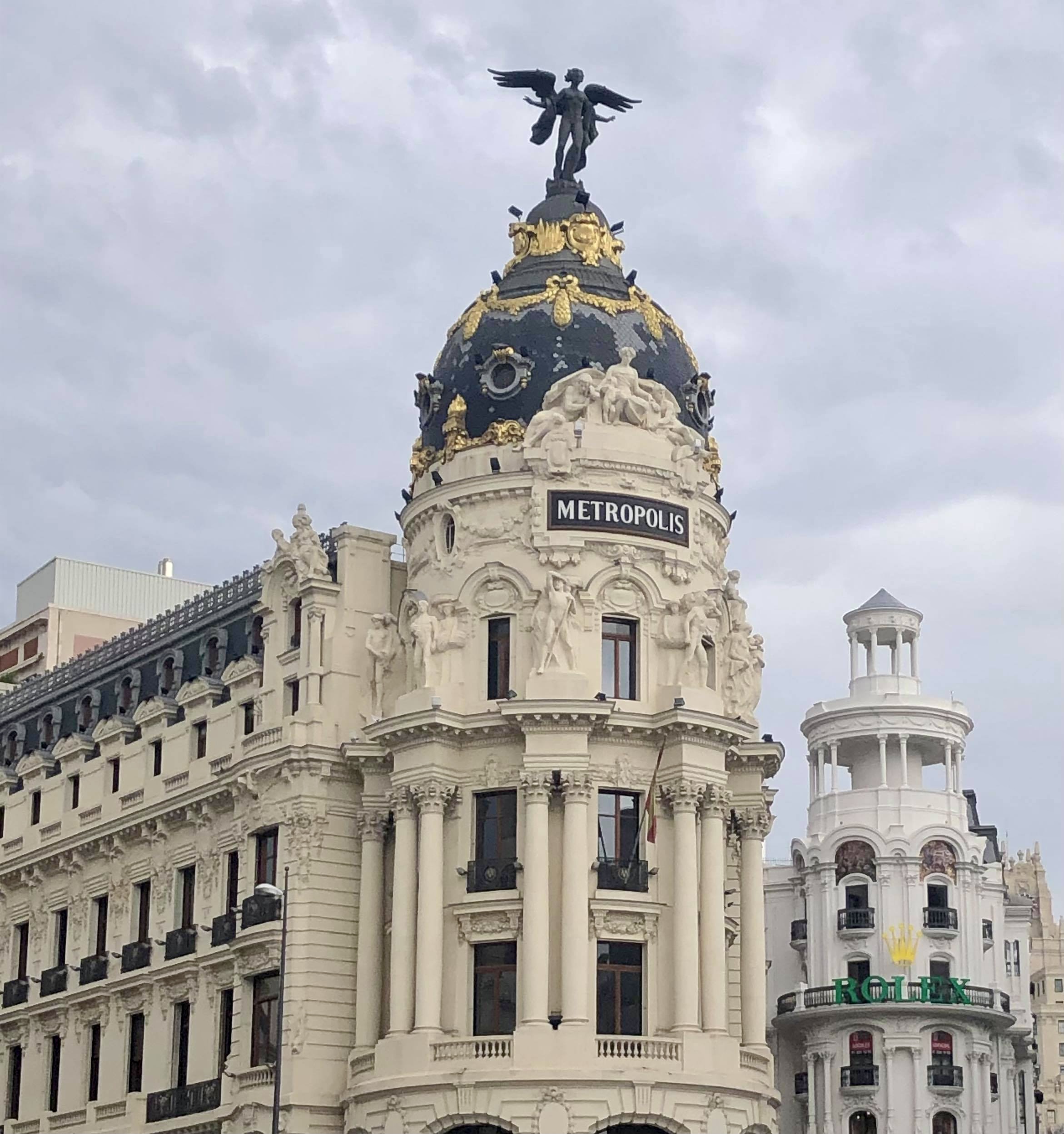 En partant de la Puerta del Sol, on peut rejoindre deux grandes artères de la capitales. Dans un premier temps, vous arpenterez la Gran Vía, qui porte bien son nom de grand-voie étant donné sa longueur de 1300 mètres, que l’on pourrait comparer aux Champs-Elysées. En effet, on retrouve de nombreux magasins de grandes marques, de beaux hôtels, des théâtres et des édifices incontournables comme le fameux Metropolis dans le style beaux-arts, qui fait penser à l’architecture haussemannienne de Paris. Ou encore le Palacio de la Equitativa, avec la boutique Hermès au rez-de-chaussée et l’hôtel Four Seasons dans les étages, d’ailleurs soutenus par des sculptures d’éléphants !