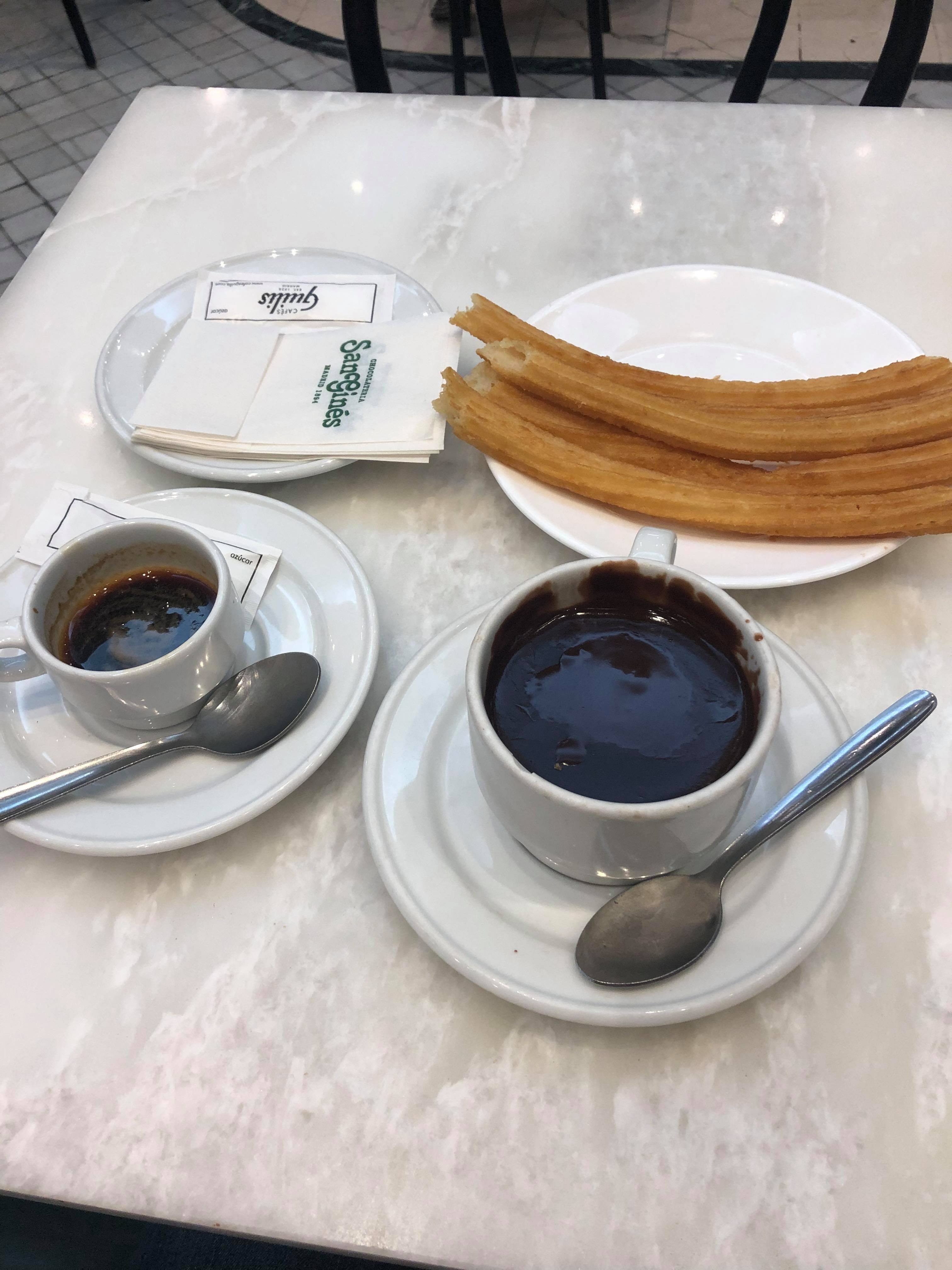 Afin de vous proposer une petite pause gustative, je vous conseille vivement de vous arrêter dans la Chocolatería San Ginés, lieu emblématique dans lequel déguster de savoureux churros à tremper dans du chocolat. Miam ! Bien qu’elle soit à proximité de la Puerta del Sol, il vous faudra chercher dans les ruelles pour la trouver car l’entrée est discrète et ne donne pas directement sur la rue principale. Et du fait de son succès, ne soyez pas surpris s’il y a un peu d’attente pour obtenir votre « chocolate con churros » dans un cadre de café traditionnel.