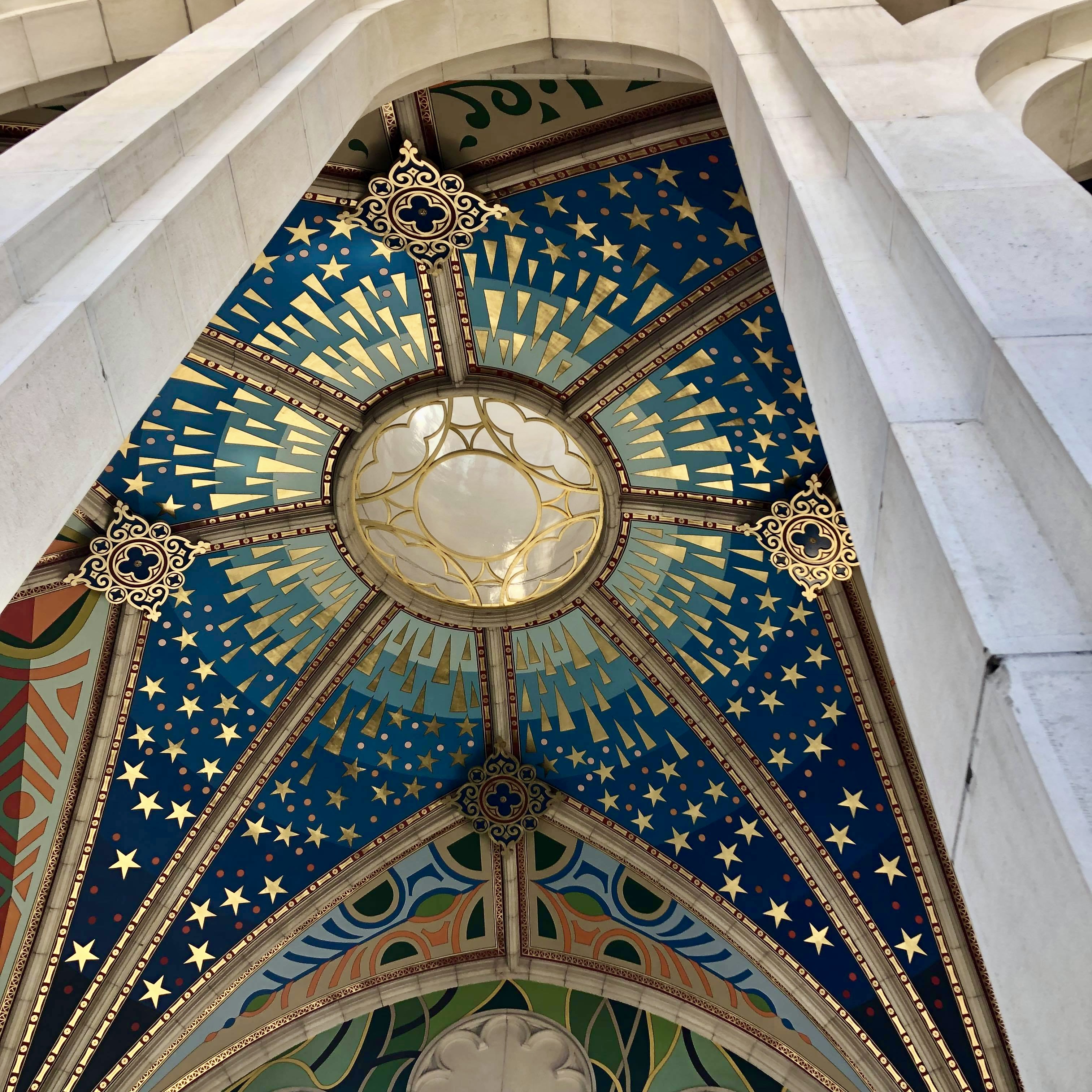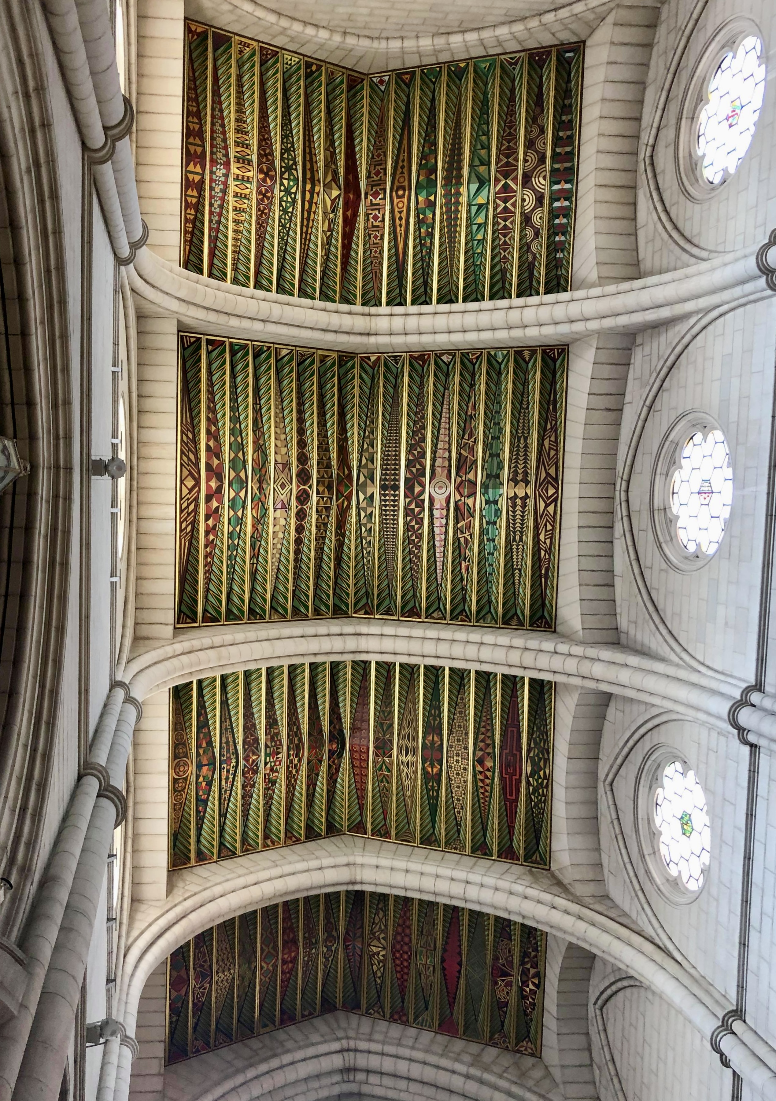 Aujourd’hui, la cathédrale de l’Almudena s’intègre complètement dans le complexe du palais royal. A l’intérieur, les détails peints de l’édifice attirent tout de suite l’œil avec une superbe coupole peinte qui reprend les quatre éléments soutenant la voûte céleste, ainsi que les peintures du chœur qui renvoient beaucoup aux icônes orthodoxes. Toutes ces œuvres picturales sont contemporaines, à l’instar des vitraux.