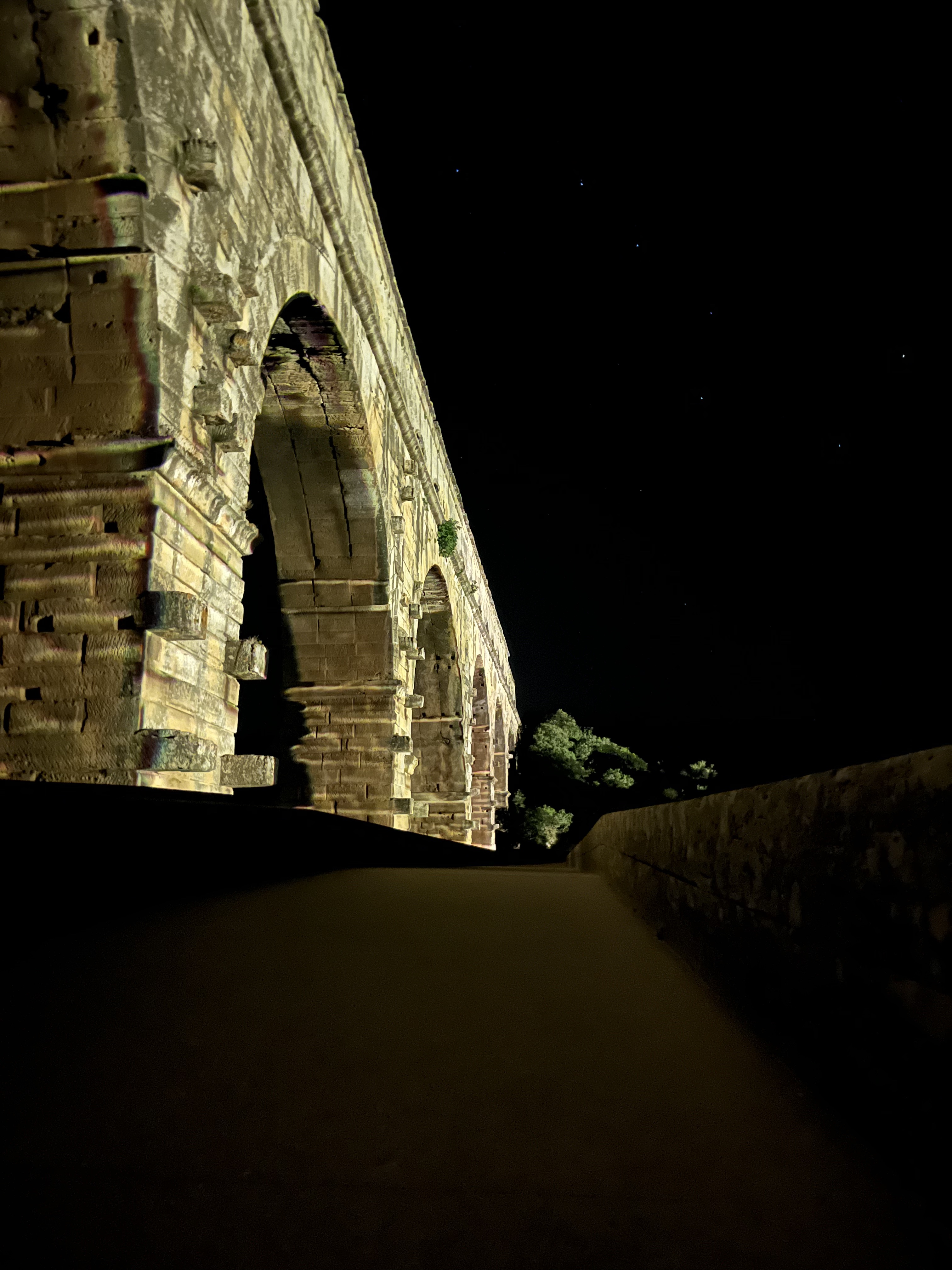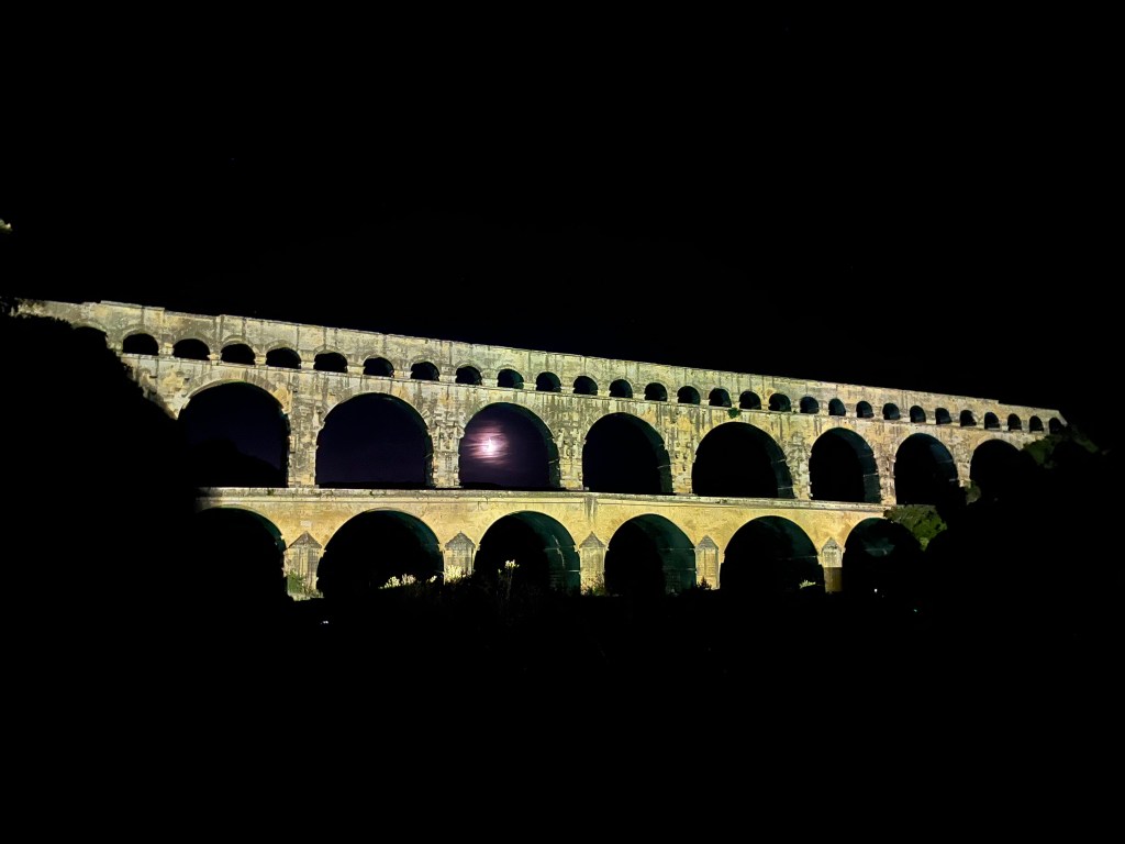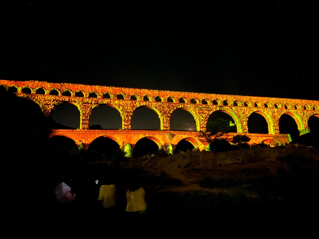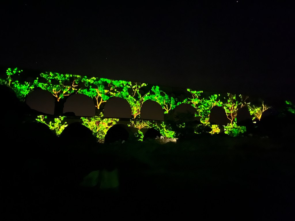 Enfin, pour couronner vos soirées en beauté, le site du Pont du Gard offre en été un spectacle sons et lumières projetées sur le monument, tel un écran géant. Chaque année le thème se renouvelle, ainsi que le bande sonore pour plonger le spectateur dans une atmosphère unique à la tombée de la nuit. Le spectacle est gratuit, seul l’accès au parking est payant (9€) et si vous souhaitez vous restaurer sur place bien sûr. Pour savourer totalement cet instant suspendu, il est préférable de s’habiller chaudement et d’apporter avec soi une serviette ou un drap de plage pour s’asseoir sur les rives du Gardon ; le must serait une chaise de camping. L’évènement se tient tous les soirs des mois de juillet et août et il serait fort dommage de rater cette expérience. Pour cela, je vous convie à cliquer sur ce lien qui renvoie sur le site internet officiel.