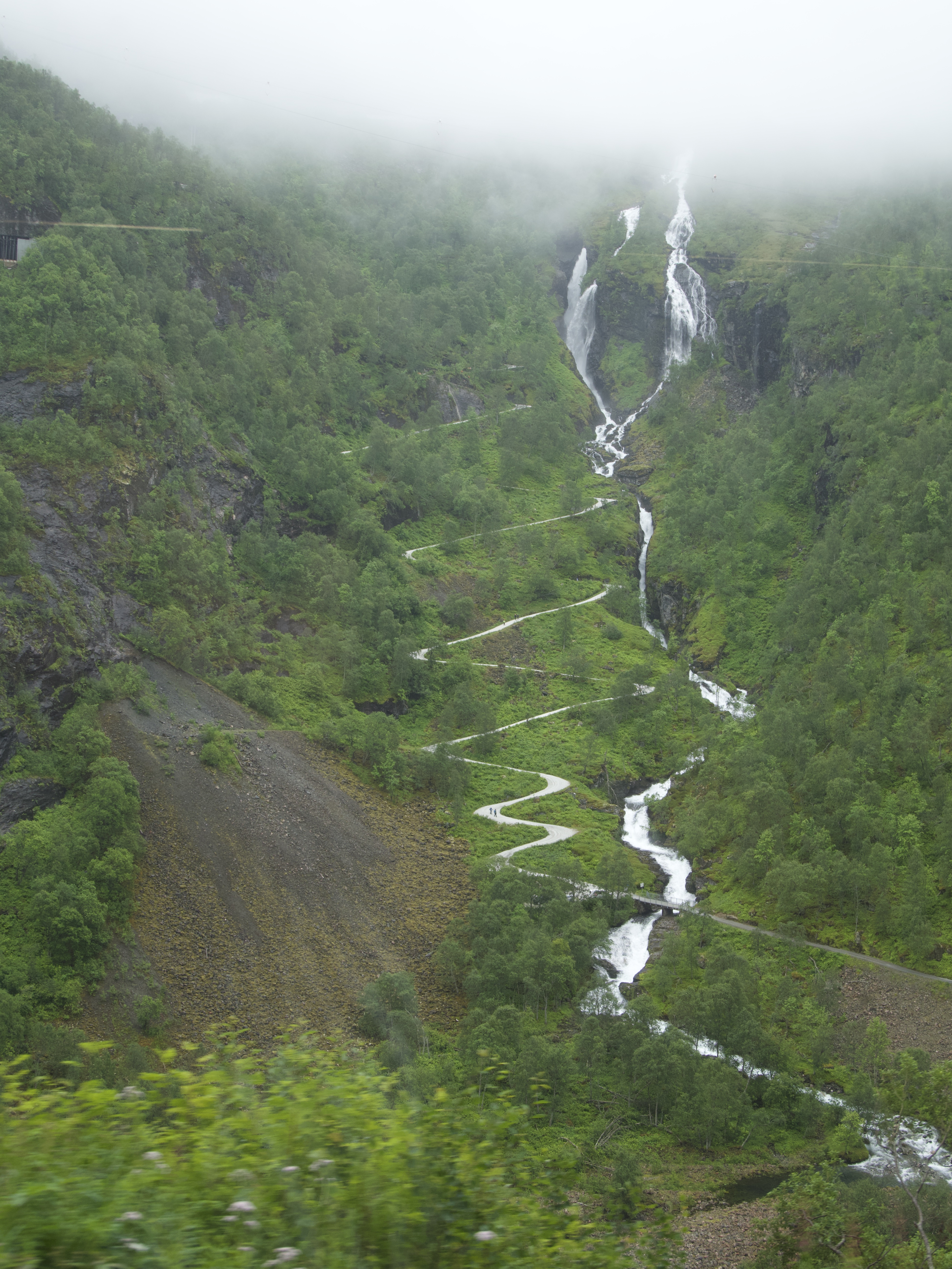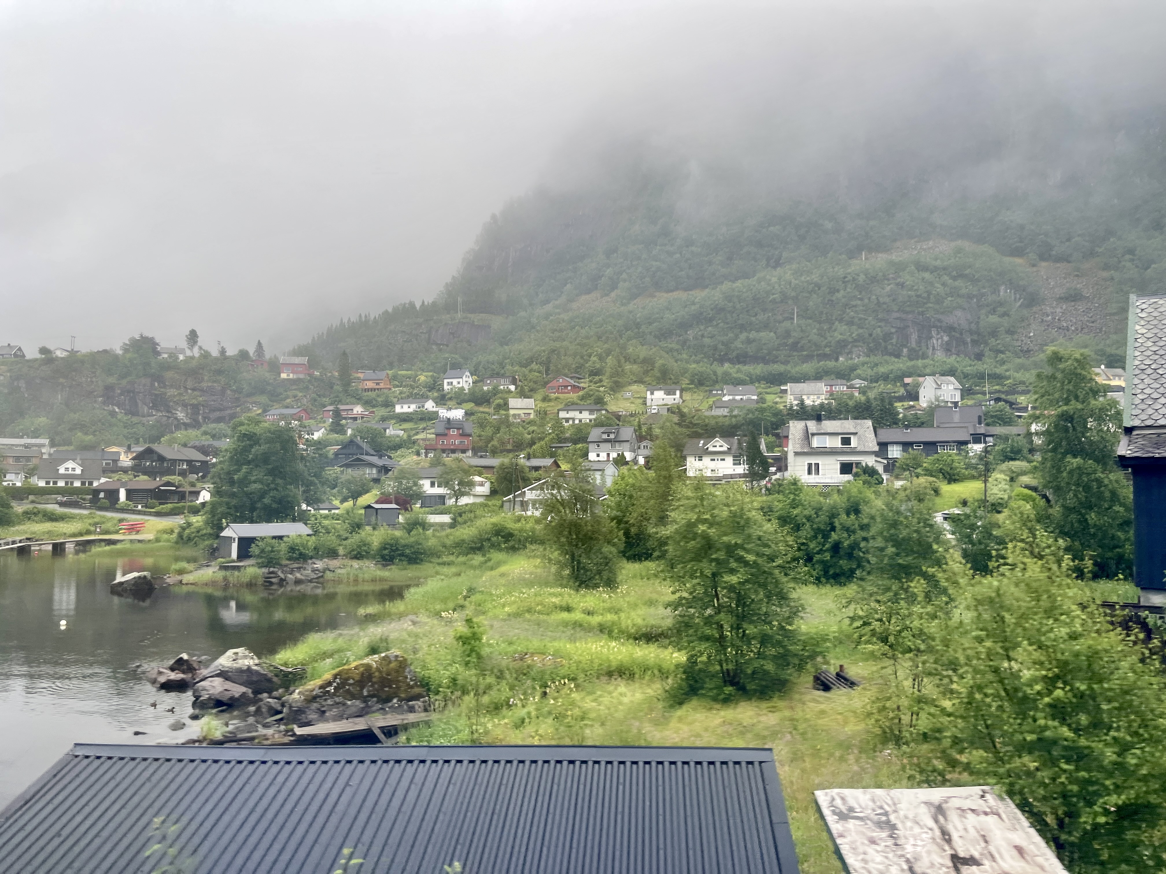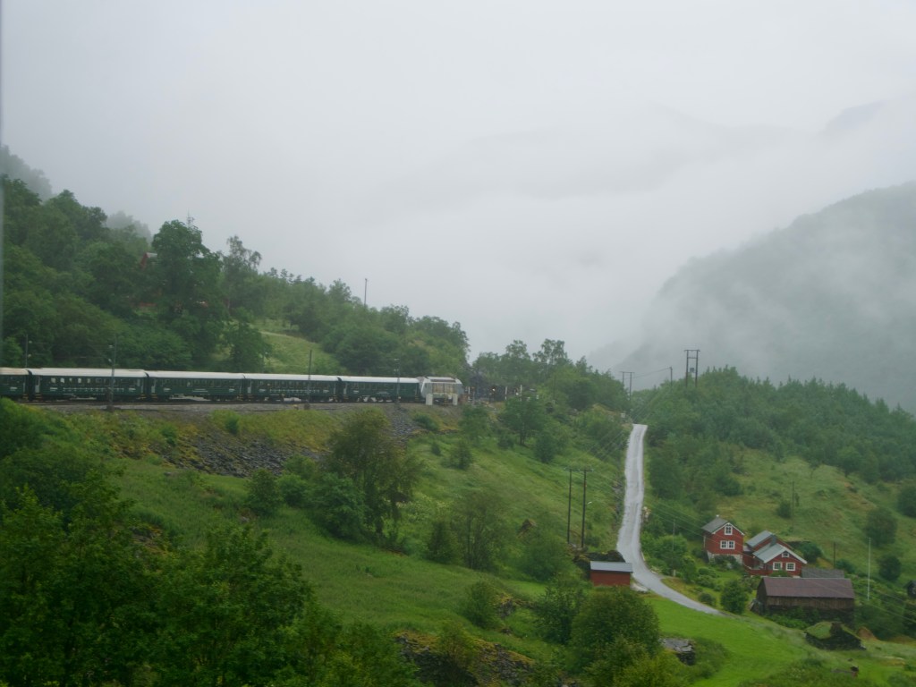 Bien qu’il ne s’agisse plus d’un train « panoramique », la ligne pour Bergen n’en reste pas moins belle pour autant. On redescend en altitude en bordant de petits villages avec des fermes typiques et colorées, on longe des lacs, des fjords et des paysages assez dramatiques. Une vraie belle découverte malgré les nombreux tunnels !