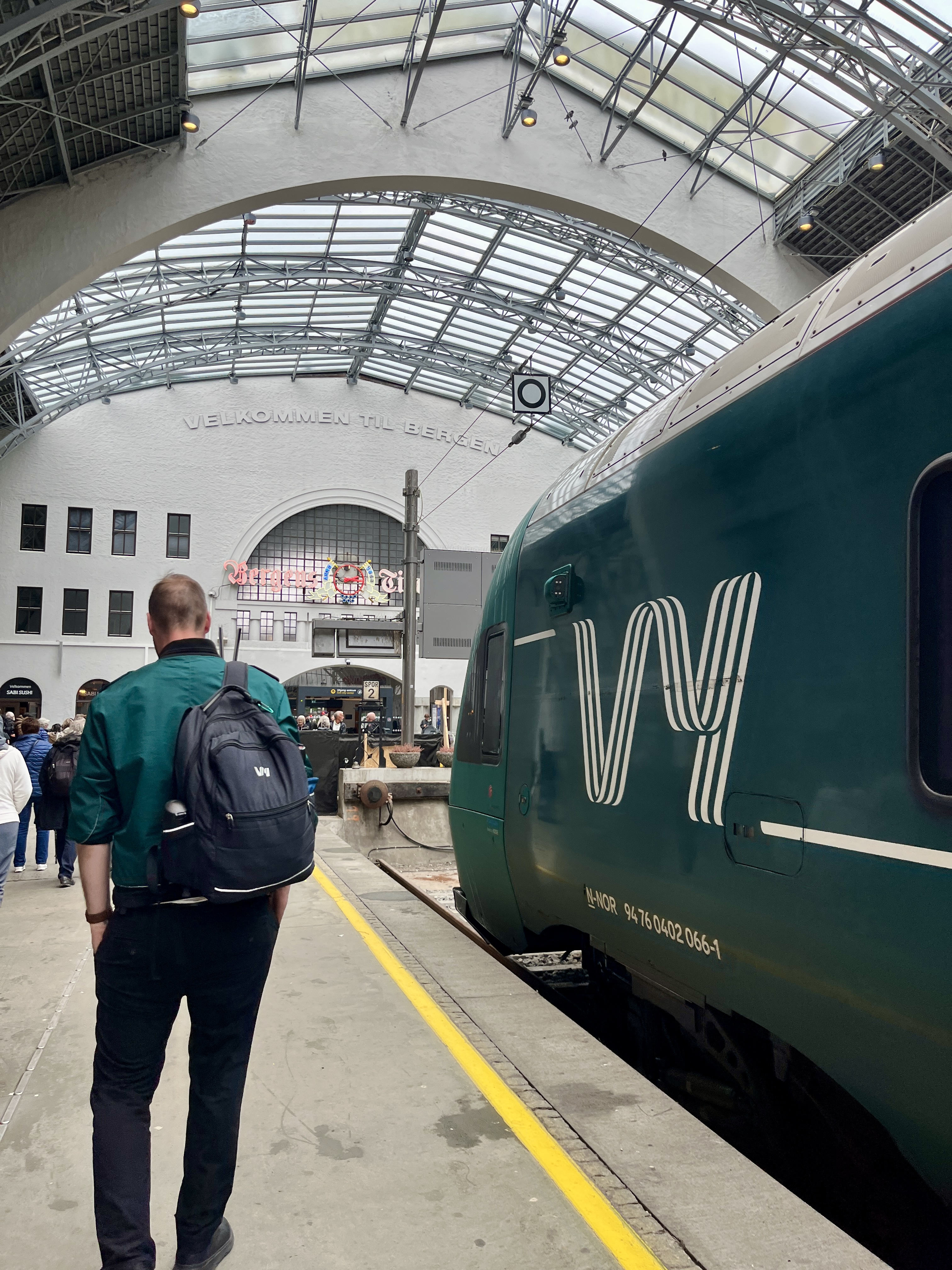 Afin de poursuivre votre voyage, embarquez depuis Myrdal pour la Bergensbanen à bord du train R40 ou F4 pour Bergen comme terminus et la ville de Voss sur le trajet. Cette fois, vous expérimenterez les trains modernes norvégiens de la compagnie nationale Vy Tog. Toujours aussi ponctuels, propres, avec des services comme prises électriques, machines à café et toilettes, ainsi que des places attitrées également. Les différents arrêts sont annoncés au micro par le personnel de bord et sur les écrans présents dans les voitures. Comptez environ 2h15 de trajet entre Myrdal et Bergen.
