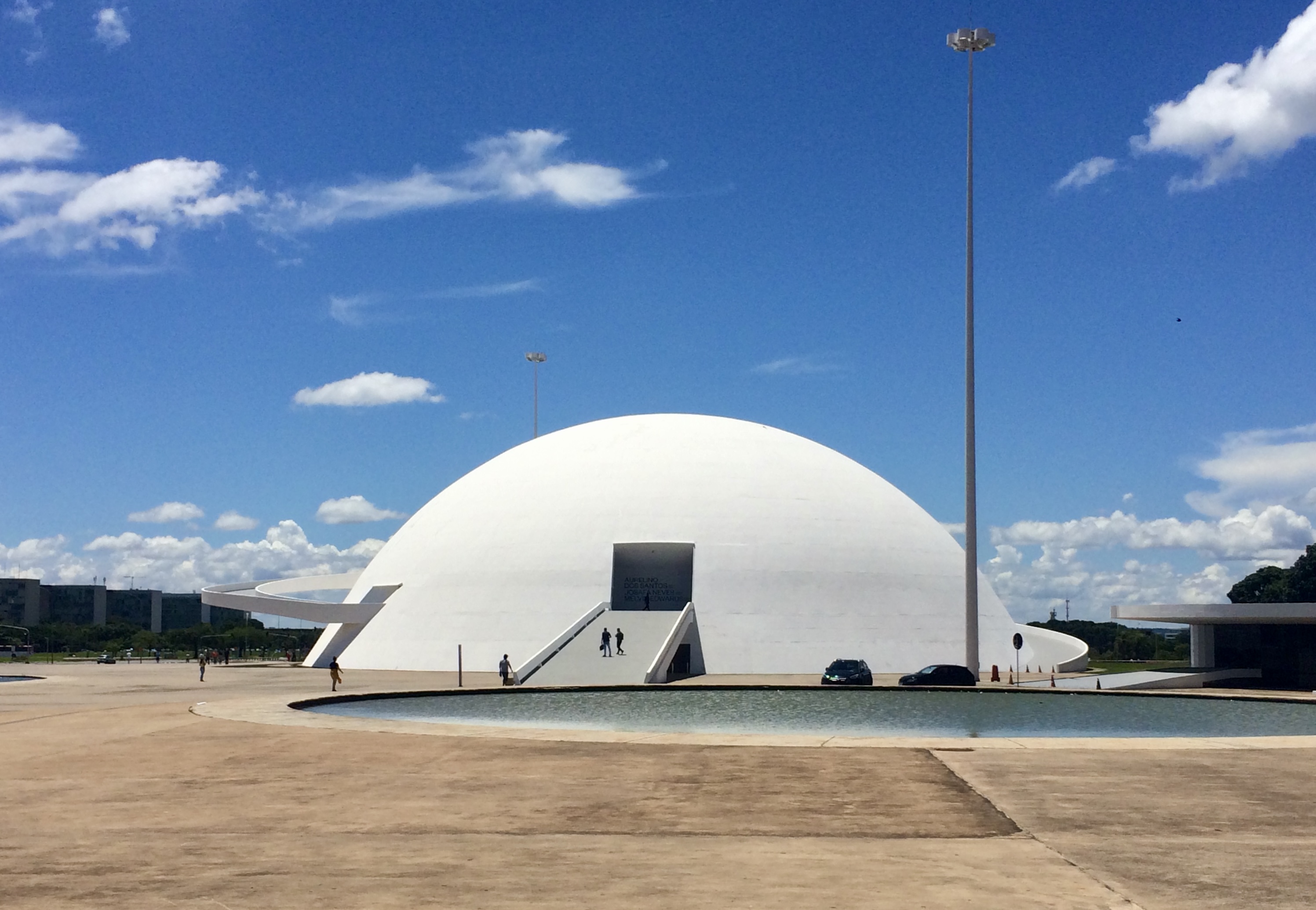 Cet édifice est l’une des principales œuvres de l’architecte Oscar Niemeyer (et oui, encore !). Il se compose d’une double structure recouverte de marbre blanc : la partie surmontée d’une coupole qui abrite le Sénat et la partie surmontée d’une soucoupe qui héberge la Chambre des députés, entre lesquels deux gratte-ciel logeant les services administratifs du Congrès. C’est le symbole incontestable du pouvoir législatif brésilien et également le lieu de rassemblement pour les manifestations sur la pelouse devant.