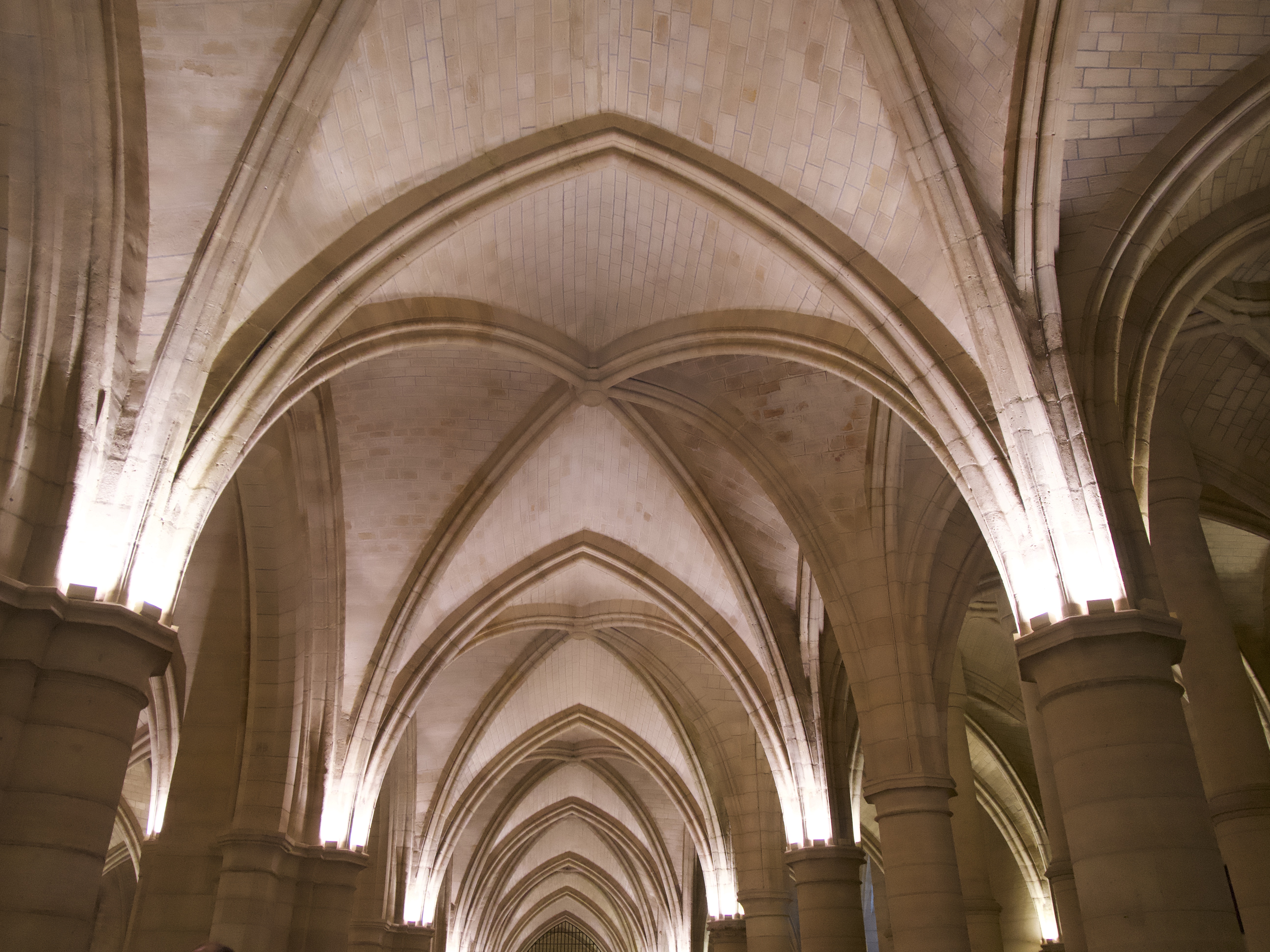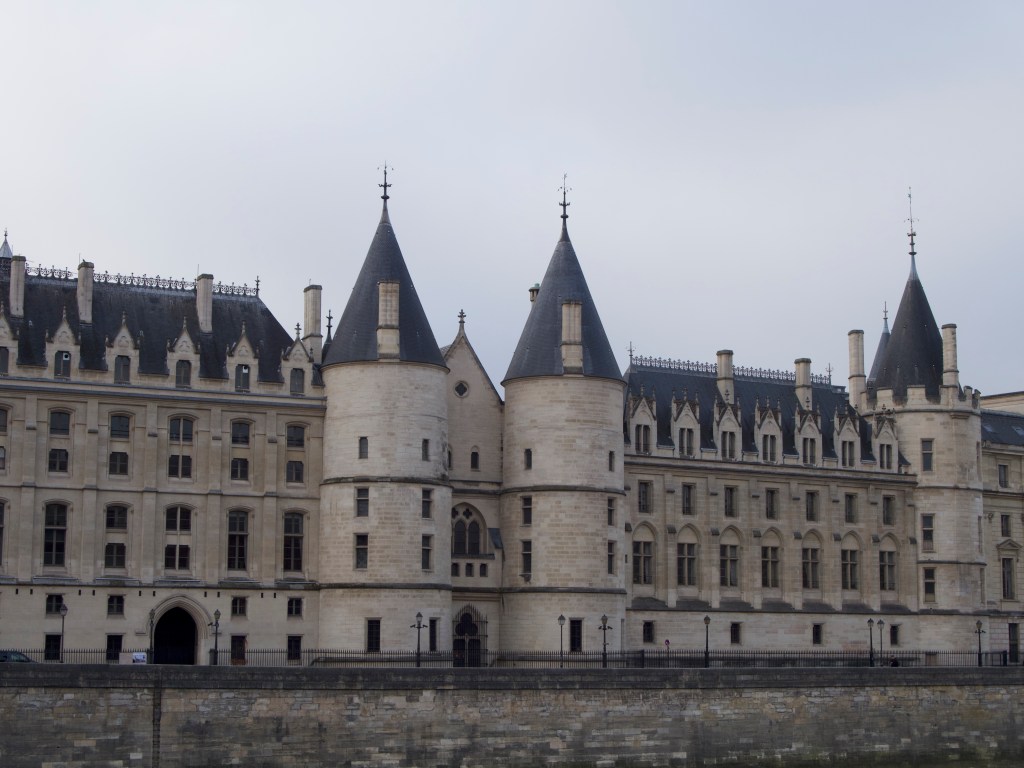 Conjointement à la Sainte-Chapelle, la Conciergerie se tient en bord des quais de Seine et fait également partie du complexe du palais de justice. Après l’installation de Clovis sur l’Ile de la Cité, c’est la dynastie des capétiens qui s’y établit et érige le palais de la Cité en demeure royale. Il fallait alors accueillir, le roi, sa cour et son personnel. C’est pourquoi on entre dans la très vaste pièce qu’est la salle des Gens d’Armes, constituée de quatre nefs voûtées d’ogives et ponctuée de quatre cheminées qui chauffaient cette pièce et la Grand’Salle du dessus, aujourd’hui disparue, où se tenaient les réceptions. À côté, l’espace s’ouvre sur les cuisines ornées d’une cheminée monumentale dans chaque coin de la pièce et toutes avaient leur fonction : cuire les viandes, les poissons, les tourtes et autres réjouissances. On n’a alors aucun mal à imaginer le faste des repas royaux.