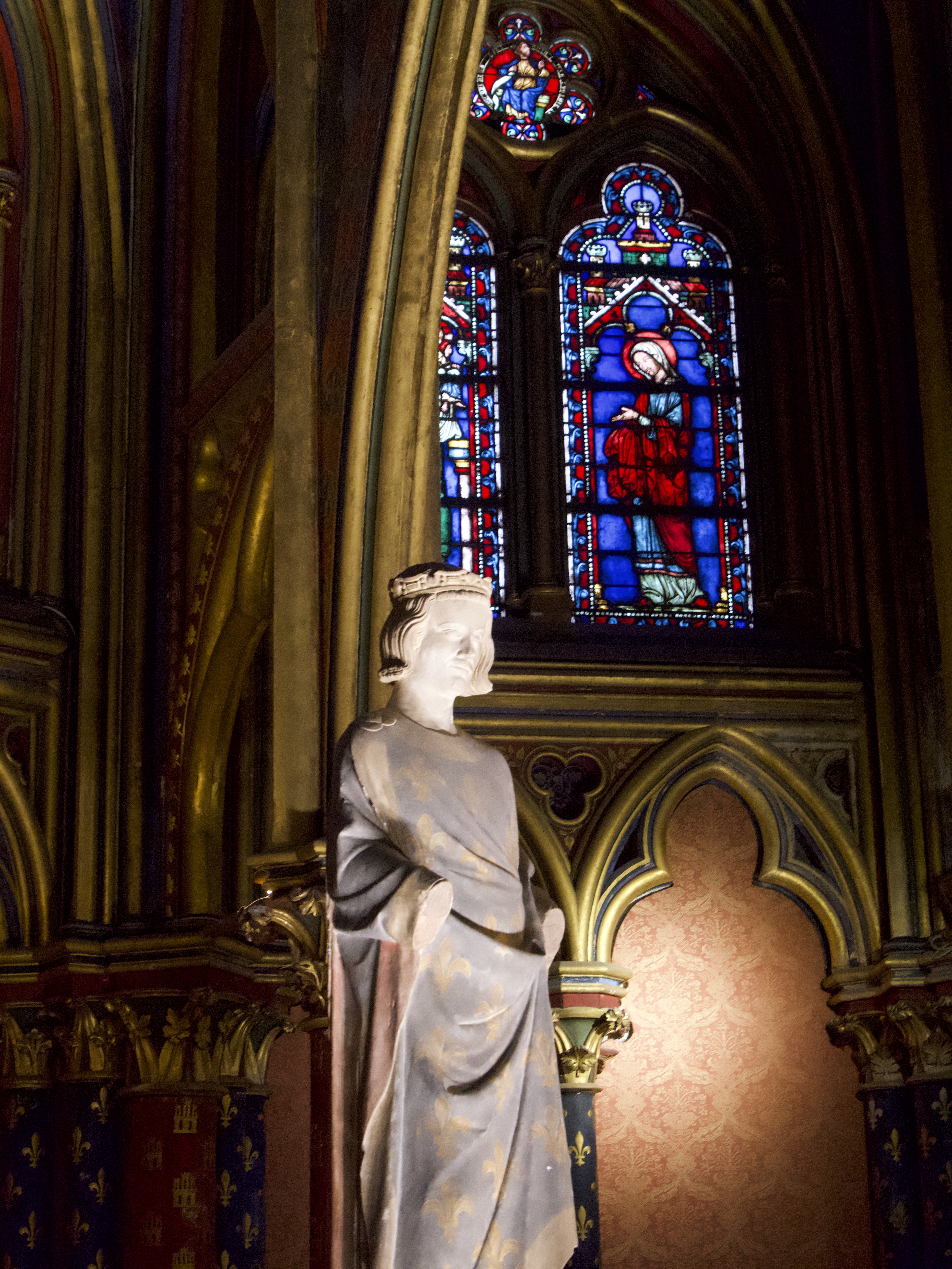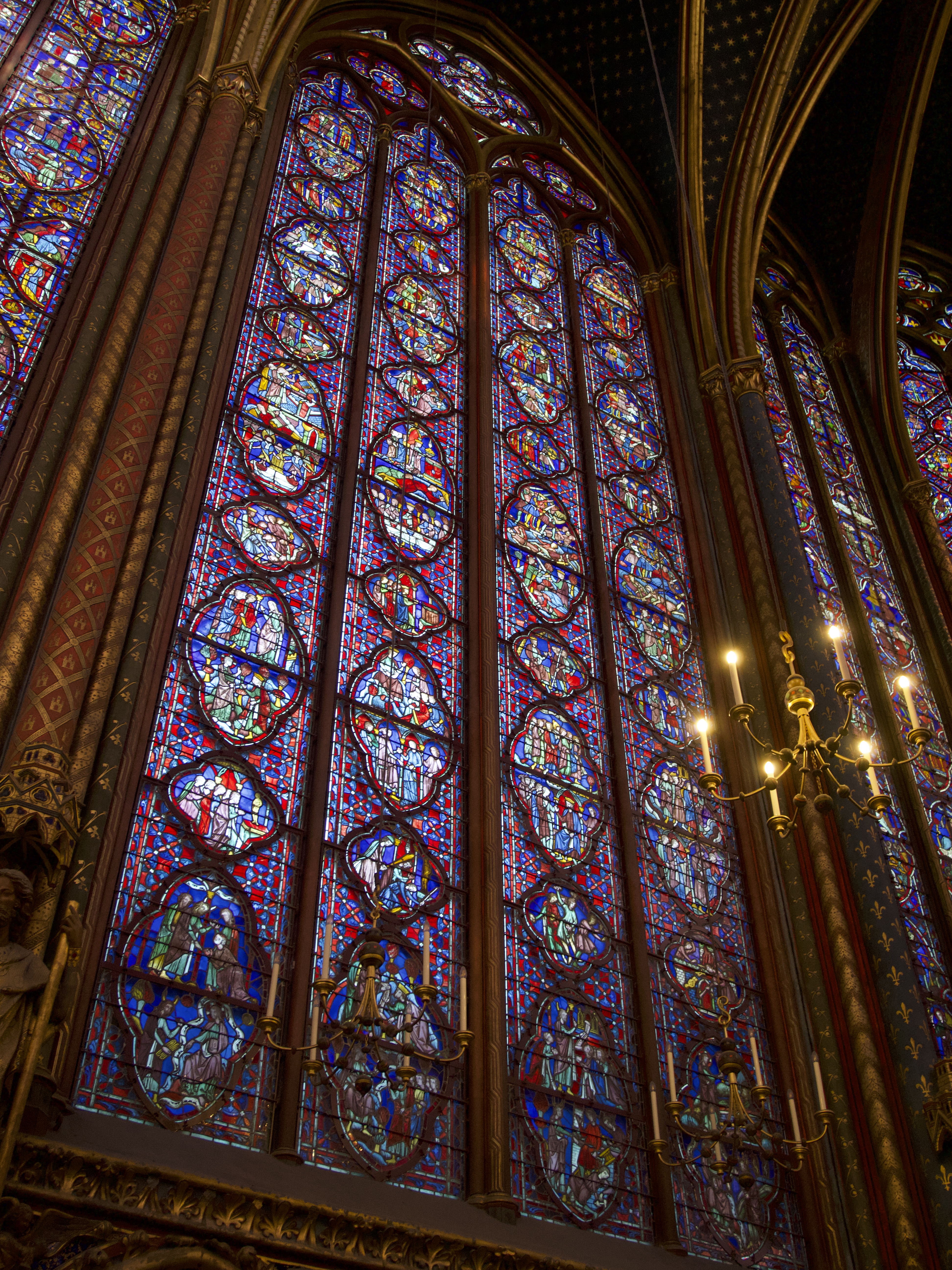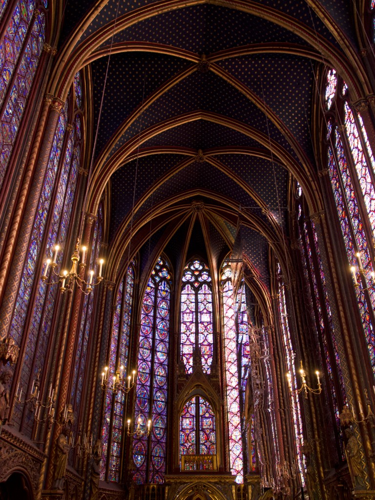 Le monument est constitué d’une chapelle basse, par laquelle entrent les visiteurs actuels et celle réservée au personnel du Palais autrefois ; puis, à l’étage, vous découvrez la chapelle haute réservée au roi, ses proches et aux chanoines. Un panaché de couleurs, une lumière éblouissante et une hauteur sous plafond amplifiée par les majestueuses verrières étourdissent presque le visiteur. Entre les voûtes peintes en or, chaque lancette et chaque médaillon des vitraux nous révèlent pas moins de 1113 scènes bibliques, comme la Genèse ou l’Apocalypse, ainsi que la découverte des Saintes Reliques. Ces dernières sont conservées au Trésor de Notre-Dame de Paris, depuis la Révolution.