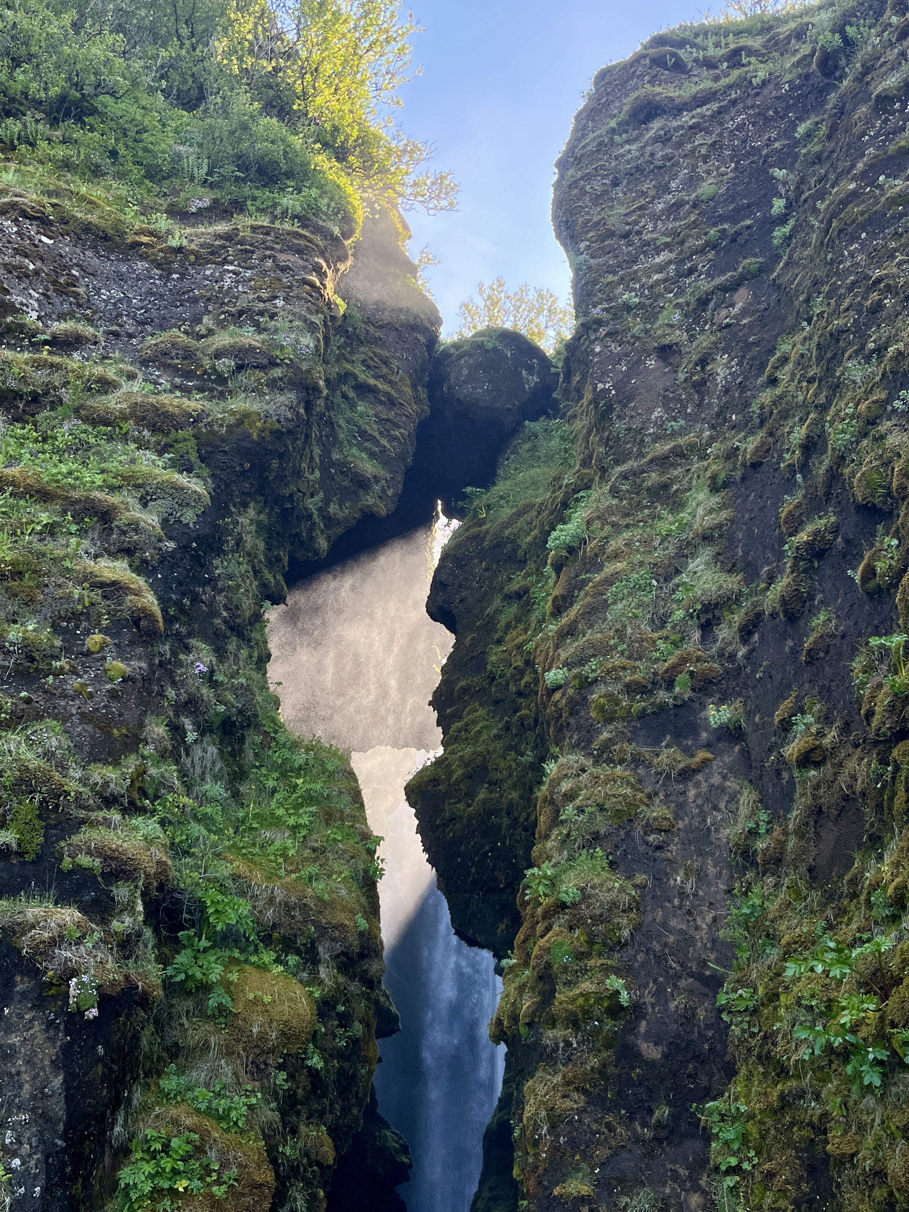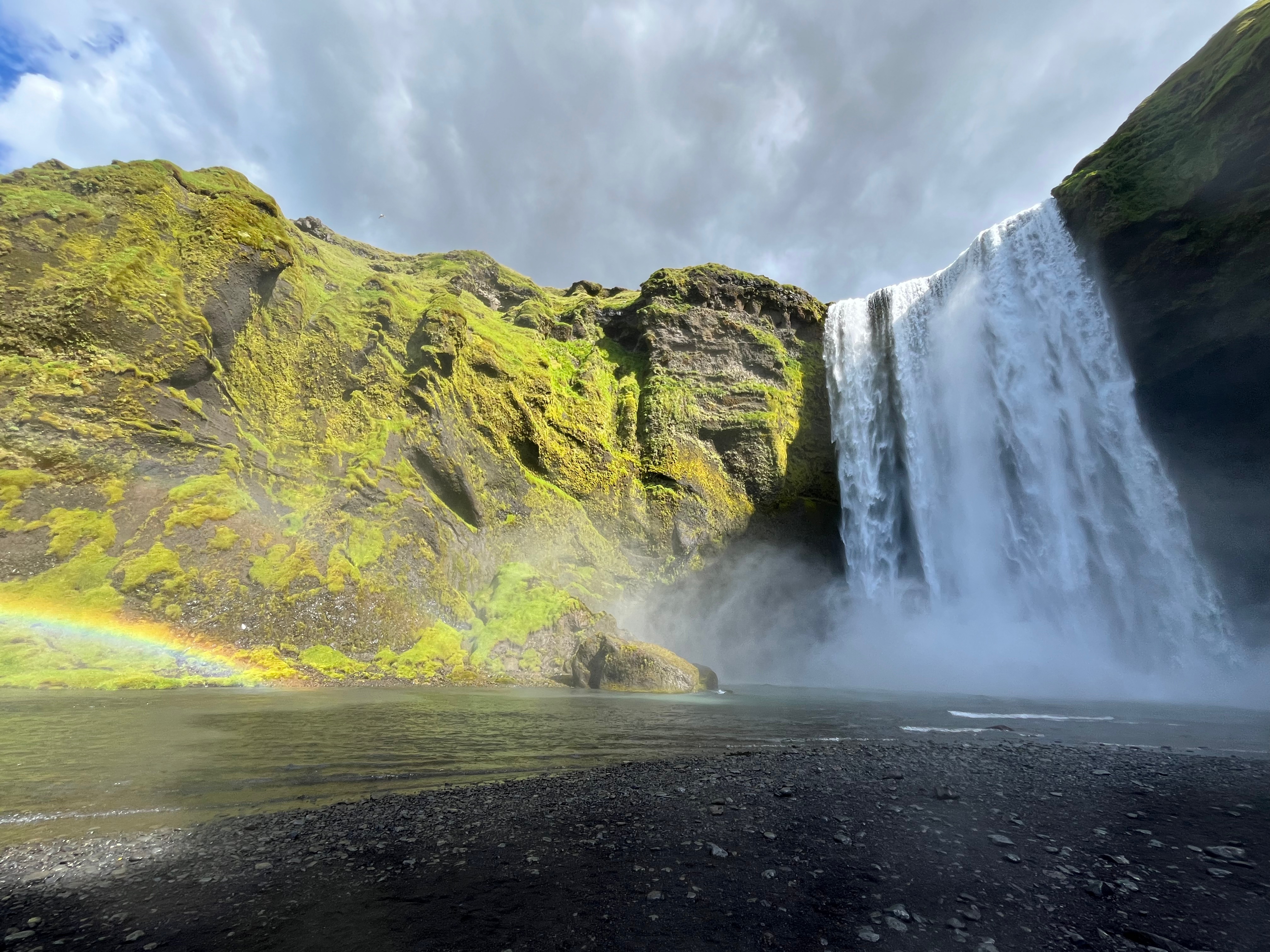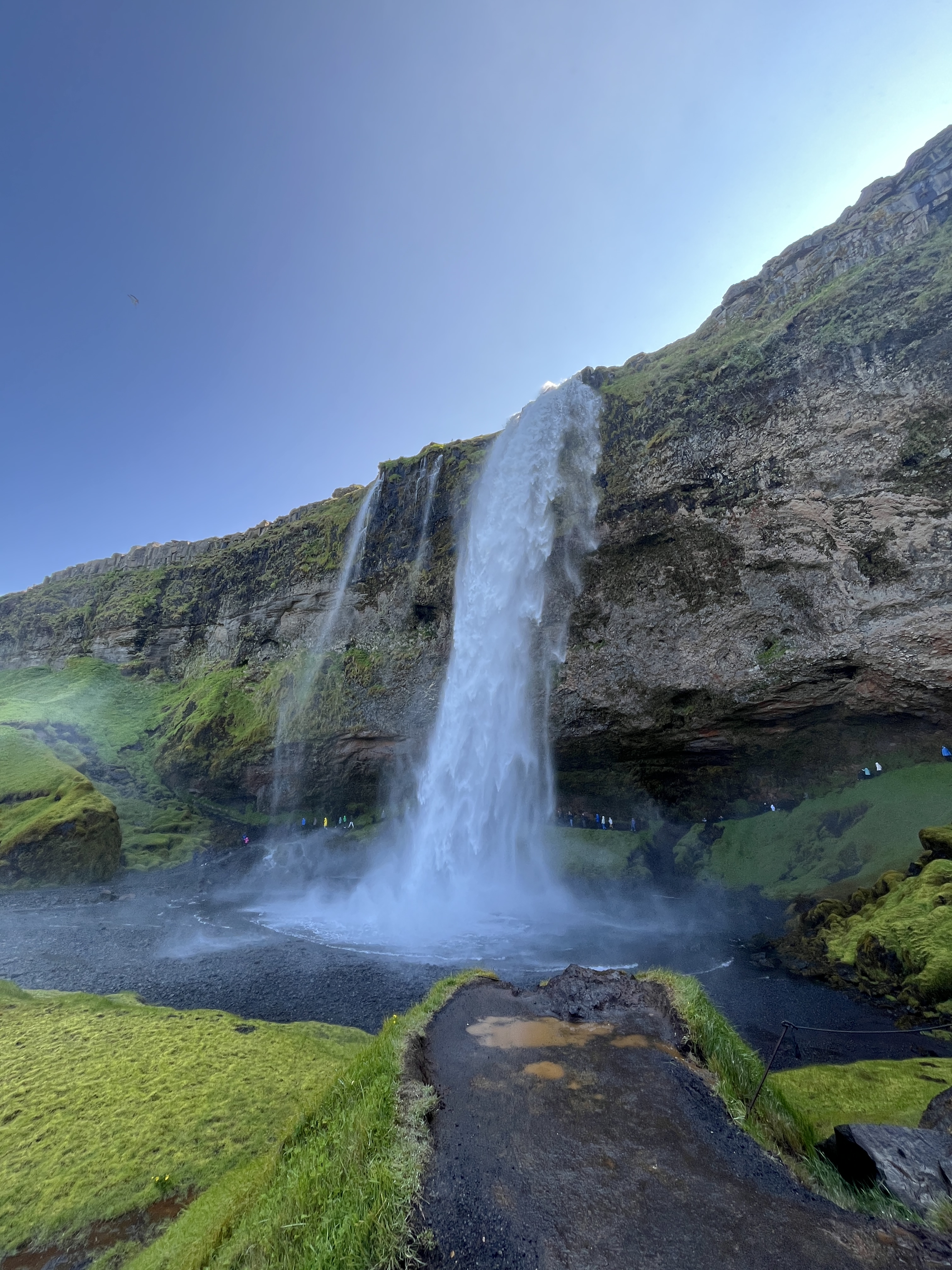 Poursuivez en marquant deux arrêts à l’ombre du glacier Eyjafjallajökull (en-dessous se cache le fameux volcan imprononçable de l’éruption de 2010). Le premier stop se fera au niveau de la chute de Skógafoss, un épais rideau d’eau de 60m de haut, que l’on découvre depuis le bas de la cascade. Préparez les k-way car elle arrose plus on approche ! Il également possible de se rendre au sommet en empruntant la volée d’escaliers sur la droite de la chute. Les arcs-en-ciel sont généralement au rendez-vous. Puis, à 30 minutes de route plus loin, vous pourrez défier la cascade de Seljalandsfoss, derrière laquelle on peut passer complètement pour en faire le tour. Là aussi, ça mouille et ça glisse pas mal ! Mais ne vous arrêtez pas à la chute, longez le relief sur la gauche et entrez dans le canyon de Gljúfrabúi, plus impressionnant encore que la cascade. En effet, une brèche s’ouvre dans la falaise pour laisser passer l’eau et la lumière. Prévoyez de bonnes chaussures et des vêtements de pluie, car la vue se mérite !
