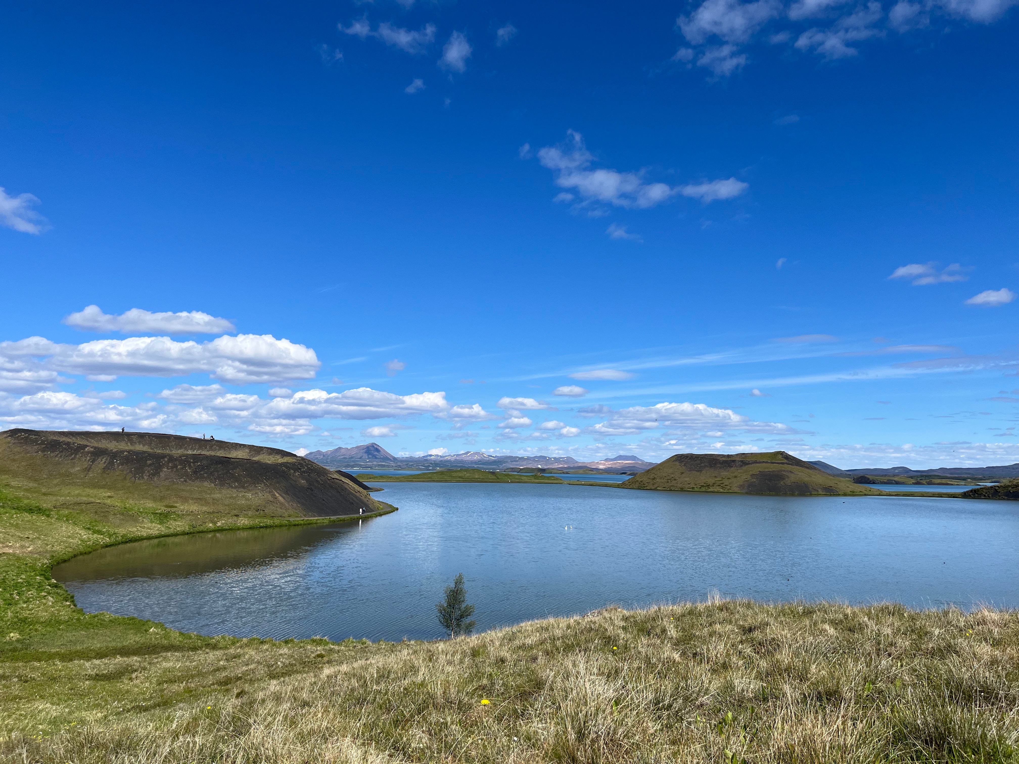 Le Cercle de diamant se poursuit dans la région du lac Mývatn, non loin du volcan Krafla qui a d’ailleurs créé et marqué ledit lac. En quelques minutes de route à peine, vous passerez d’un site à l’autre et surtout d’une ambiance à une autre. Marquez un arrêt pour arpenter les verdoyants pseudo-cratères de Skútustaðagígar. Cette formation en bordure de lac est le résultat d’une coulée de lave arrivée au contact de l’eau. Celle-ci, sous l’effet de la chaleur, cherche à s’échapper sous forme de vapeur et de bulles géantes qui se sont solidifiées très rapidement.
