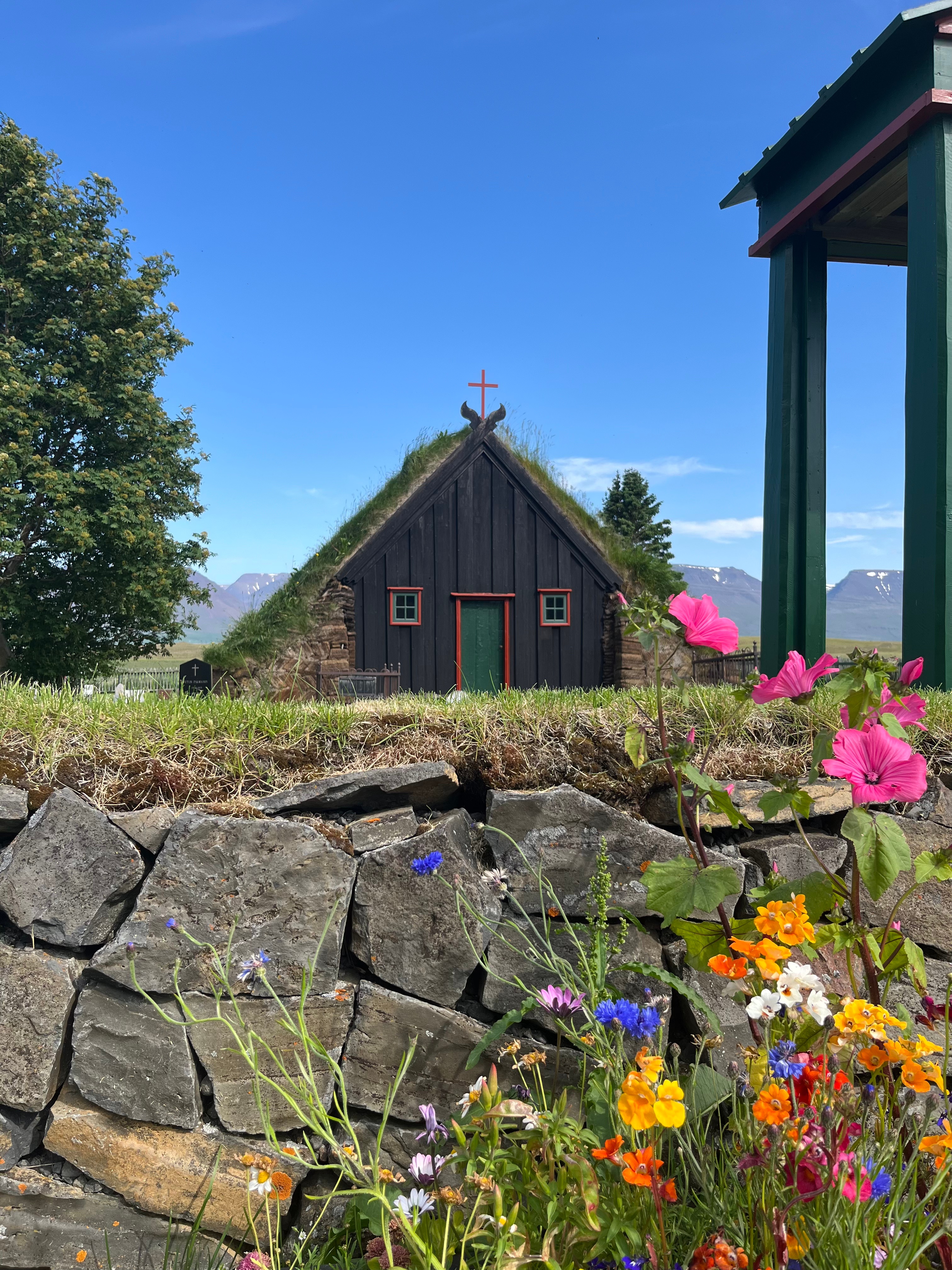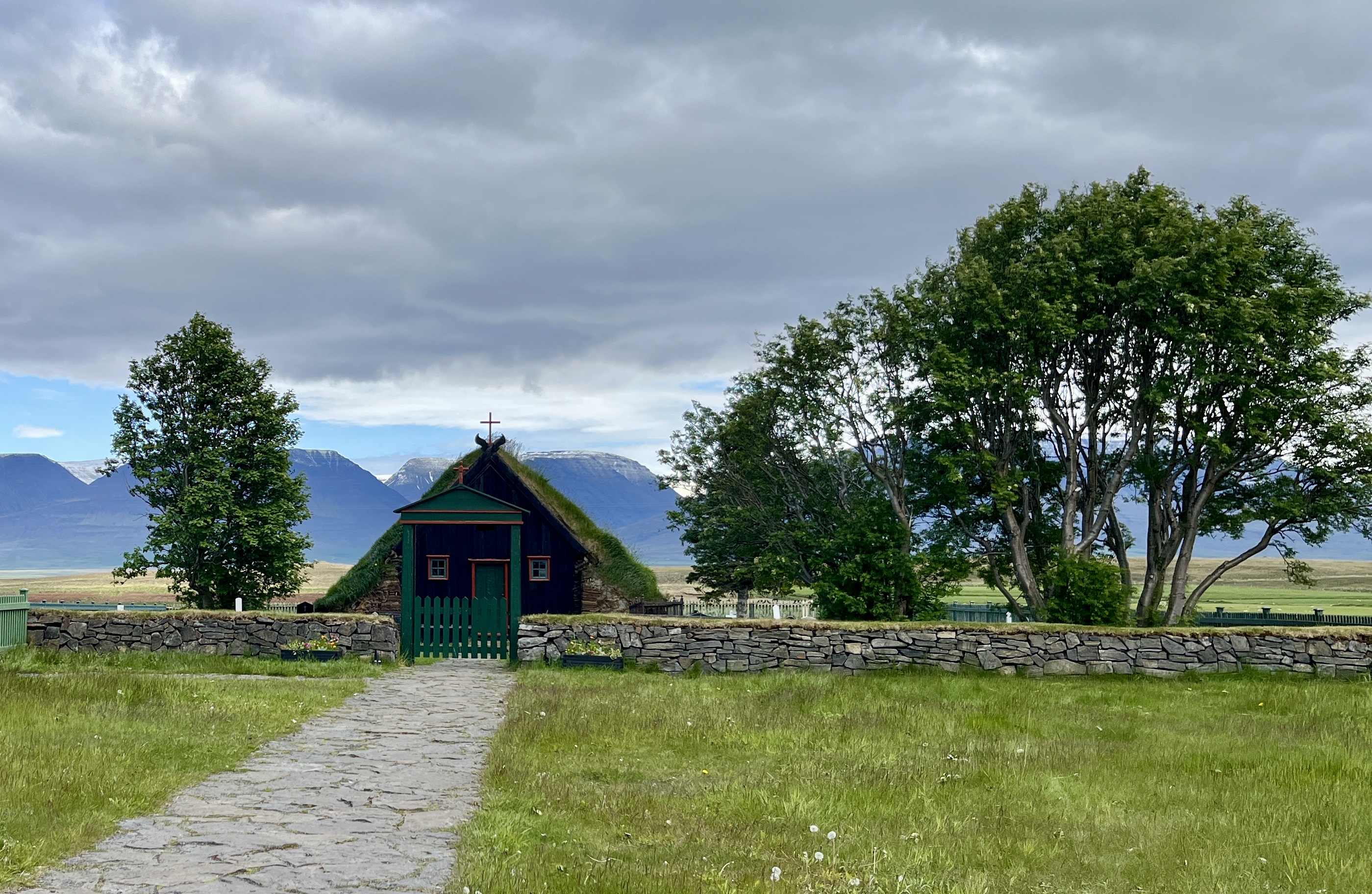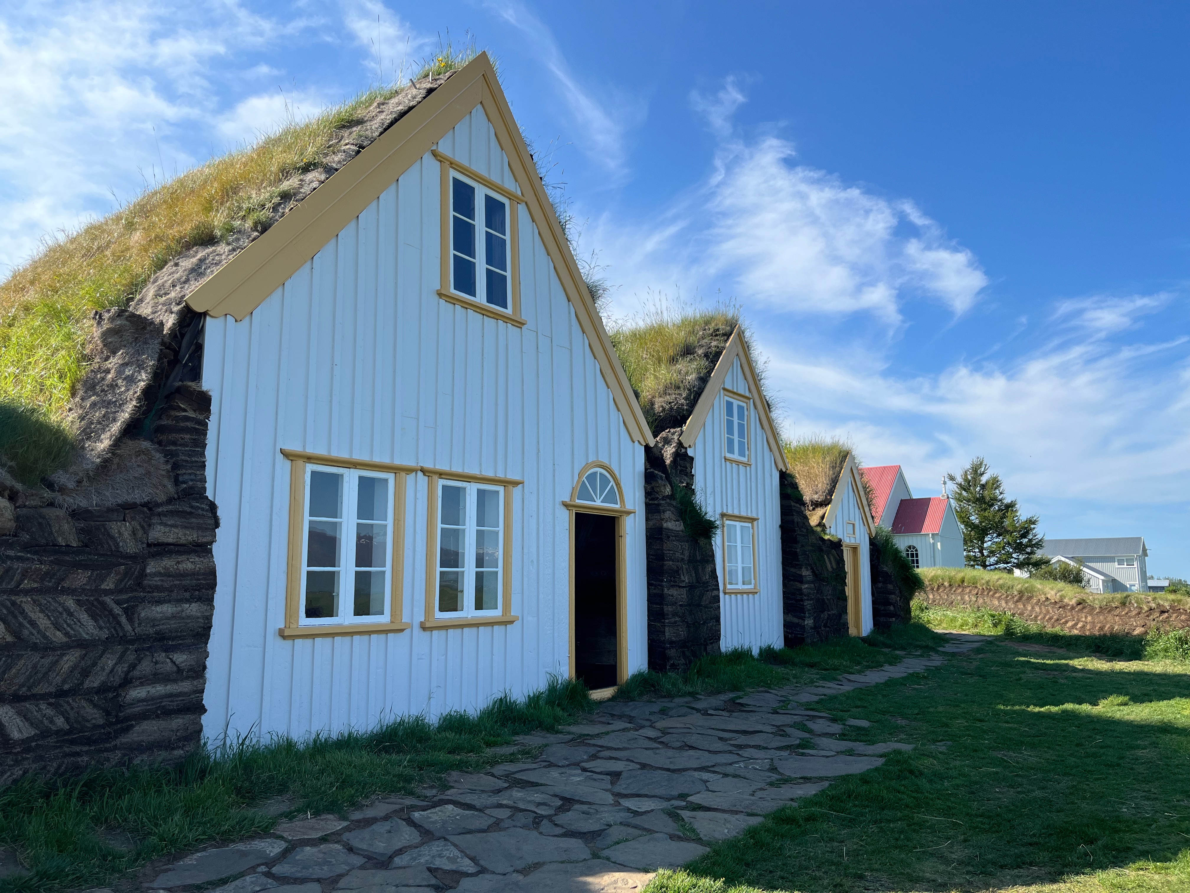 En rattrapant la route 1, prenez un instant pour vous balader au sommet des innombrables collines de Vatnsdalshólar, issues d’un glissement de terrain du relief montagneux voisin, il y a environ 7000 ans. Puis, dépassez Blönduos pour réellement arriver dans la région du Skagafjörður, où l’on trouve plus de chevaux que d’habitants. Je vous conseille de vous rendre à la charmante petite église Viðimýrarkirkja, traditionnellement réalisée avec sa structure de bois et son toit de tourbe. Datant de 1834, c’est l’une des rares églises de ce type encore debout en Islande et si vous la visitez en été, vous aurez l’opportunité d’entrer à l’intérieur, moyennant quelques couronnes. Enfin, terminez votre parcours par le musée de plein air de Glaumbær, où ont été réhabilité des maisons de tourbe, bien que le site ait accueilli des habitants jusqu’en 1947. La visite du musée occupe une bonne heure en parcourant le dédale de pièces de la ferme, décorées d’objets d’époque utilisés par la population rurale d’Islande. Tous les détails sont à retrouver sur le site internet officiel. Faites une pause pour la nuit dans le port de Sauðárkrókur.
