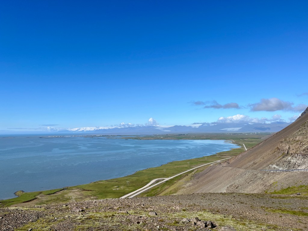 Si la météo le permet pour cette journée, prenez la route 76 pour longer la péninsule Tröllaskagi de cette région du Skagafjörður. La route est plus cahoteuse, mais tellement belle et reliant les coins les plus reculés d’Islande. Plusieurs arrêts sur le chemin permettent une pause photo au-dessus des vagues de l’océan arctique. Ainsi, je vous invite à interrompre votre conduite dans le village côtier et mystérieux de Siglufjörður, logé au pied de montagnes dépassant les 600m d’altitude. Une multitude de maisons colorées dressées sur le port qui ont vu se succéder des pêcheurs de requins, puis de harengs font la notoriété du village.