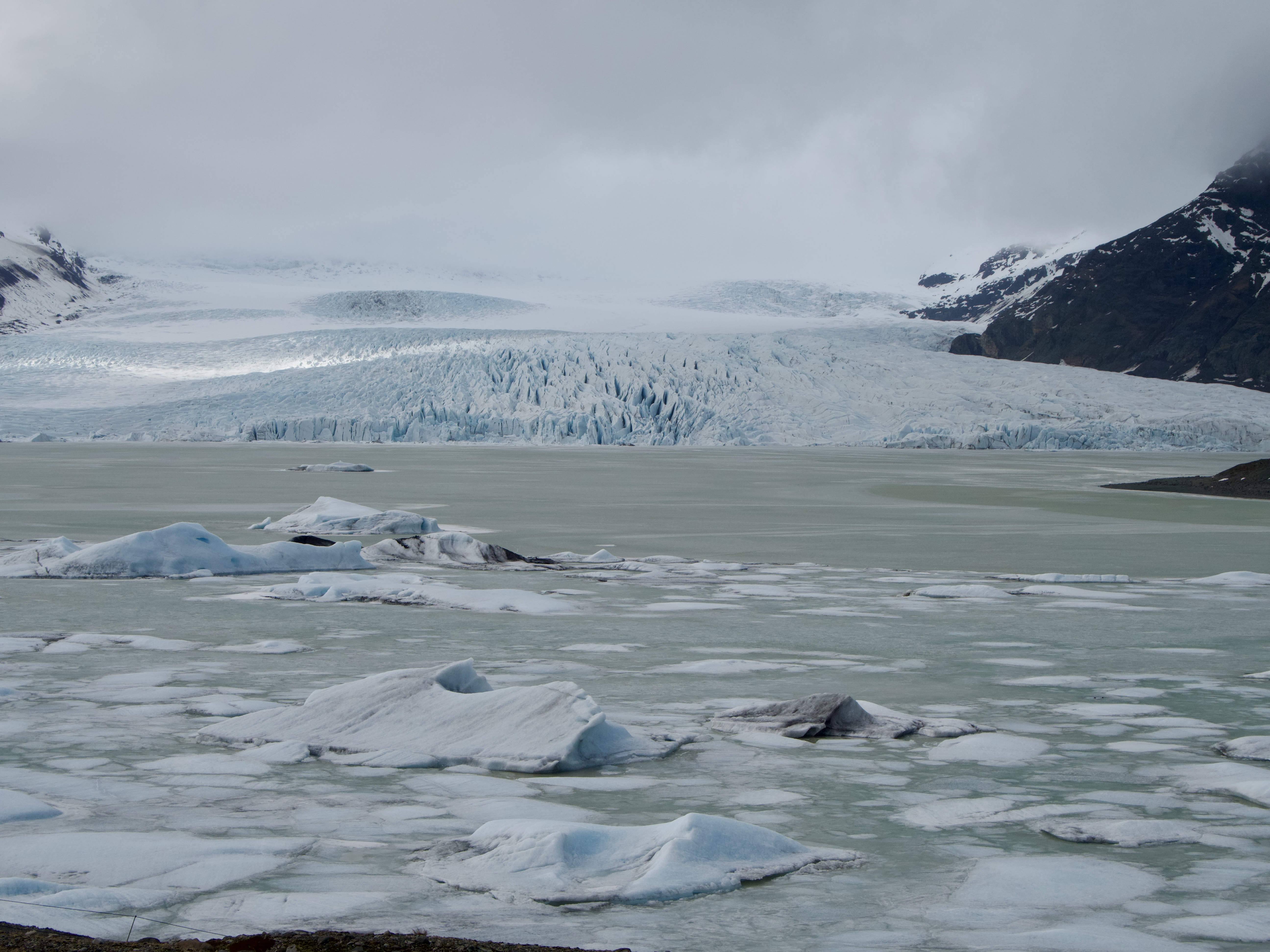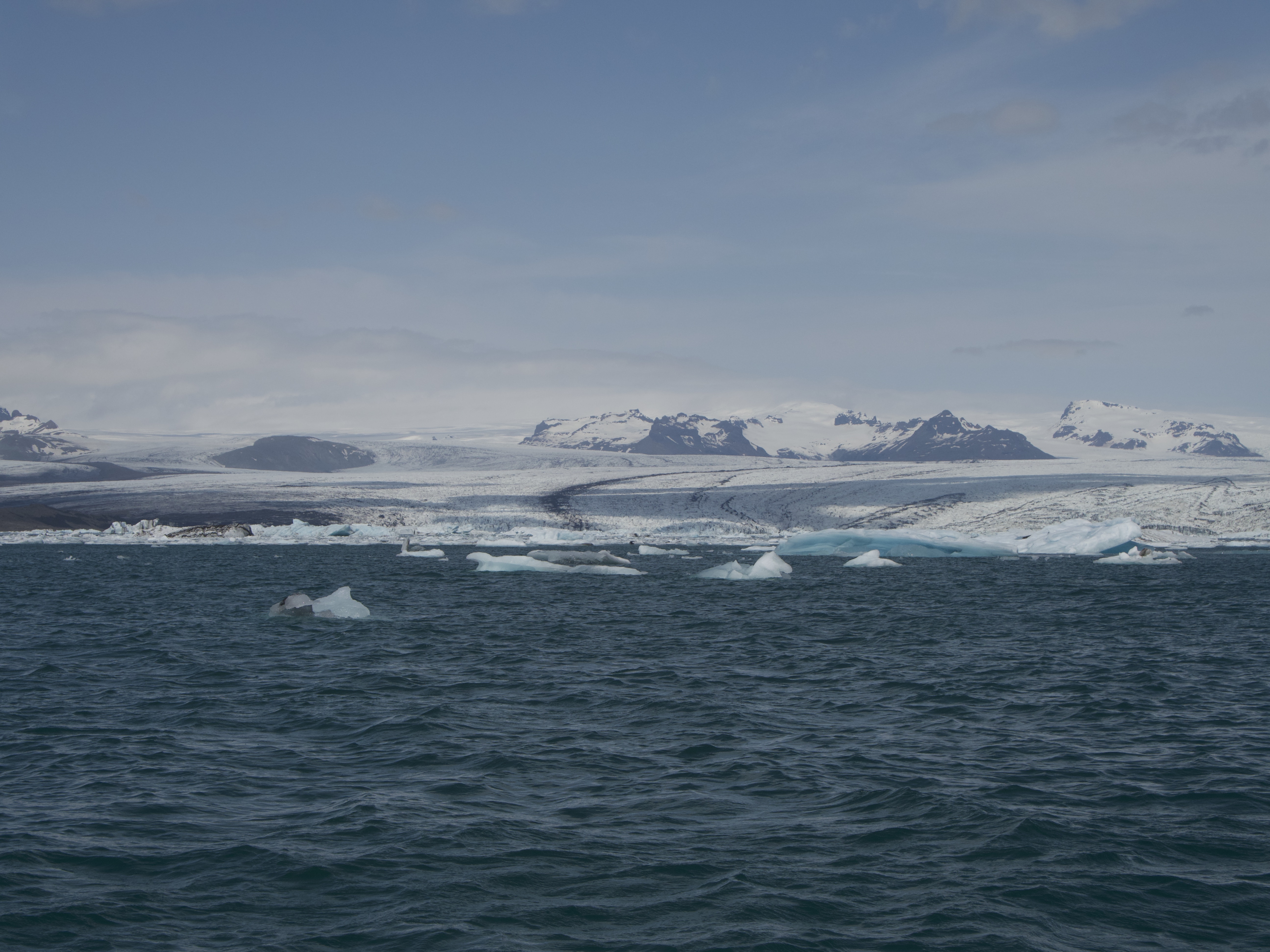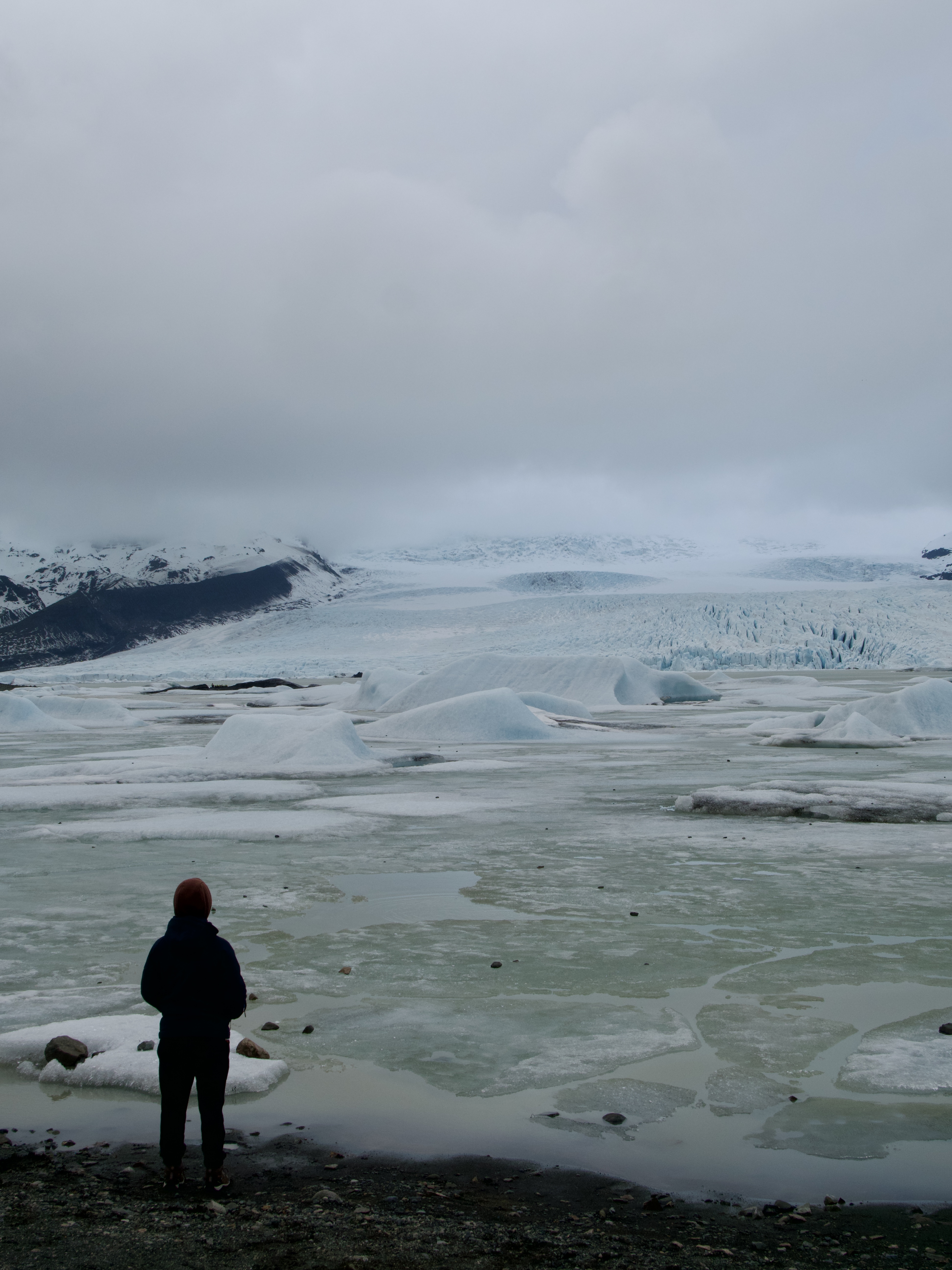 Finir par la côte sud est, à mon sens, plus judicieux car elle est la plus frappante en contrastes. Pour commencer votre journée, rendez-vous au lac glaciaire du Jökulsárlón, parsemé d’icebergs. Ces derniers se détachent du plus gros glacier d’Islande, le Vatnajökull, à 9km de la rive et dérivent jusqu’au canal rejoignant l’océan. Ainsi, on observe un camaïeu de bleus infini, avec des touches de blanc et de noir. Un décor incroyable, dans lequel il est possible de naviguer soit par speedboat, kayak ou encore bateau amphibie. Avec un peu de chance, vous apercevrez peut-être quelques phoques ! En longeant le canal, en-dessous du pont, vous pouvez vous diriger vers la fameuse Diamond Beach, la plage de sable noir où s’échouent parfois des restes d’icebergs rejetés à l’océan et ramenés par les vagues sur la berge. Ces deux sites sont assez touristiques et si vous souhaitez plus de solitude, je vous conseille alors de vous rendre à la lagune glaciaire suivante, la petite sœur Fjallsárlón. Cette fois-ci, la langue glaciaire étant bien plus proche de la rive, on prend une véritable « claque » de l’immensité des glaciers.