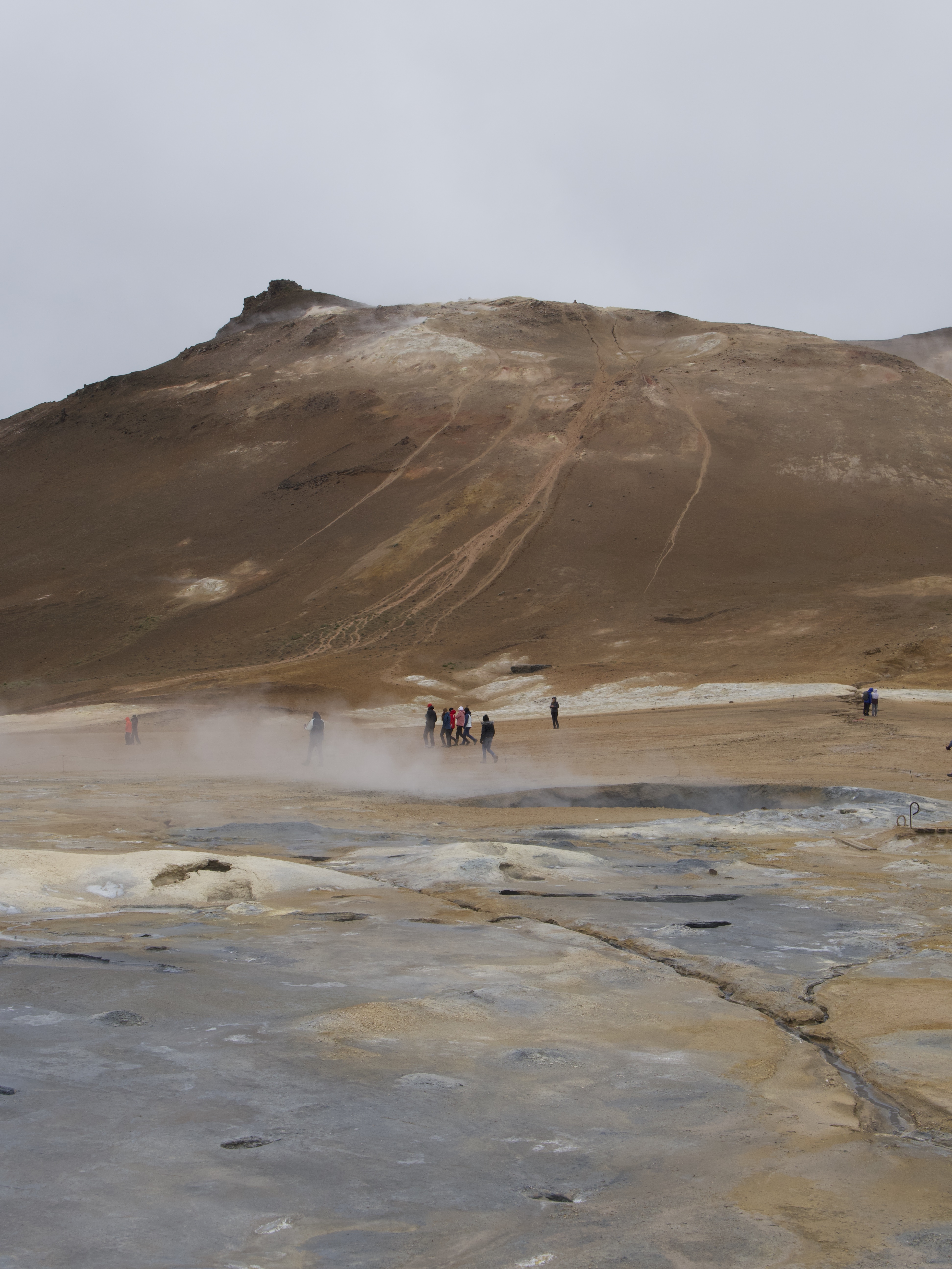 Puis, découvrez le champs de lave de Dimmuborgir, fruit d’une éruption il y a 2300 ans, érodé par le temps et donnant naissance à des formations volcaniques étranges. Laissez votre imagination prendre le dessus… Enfin, terminez par le site hydrothermal de Hverir (aussi appelé Námafjall) qui regorge de surprises. Un florilège de couleurs ocre, gris et jaune parsèment le sol qui gronde. Des vapeurs et fumerolles s’échappent des marmites bouillonnantes et l’odeur du soufre est omniprésente, à la limite du supportable. Mais on a tout de suite l’impression d’atterrir sur Mars, un régal pour les yeux ! Sur le retour vous avez la possibilité de profiter des bains thermaux de Mývatn.