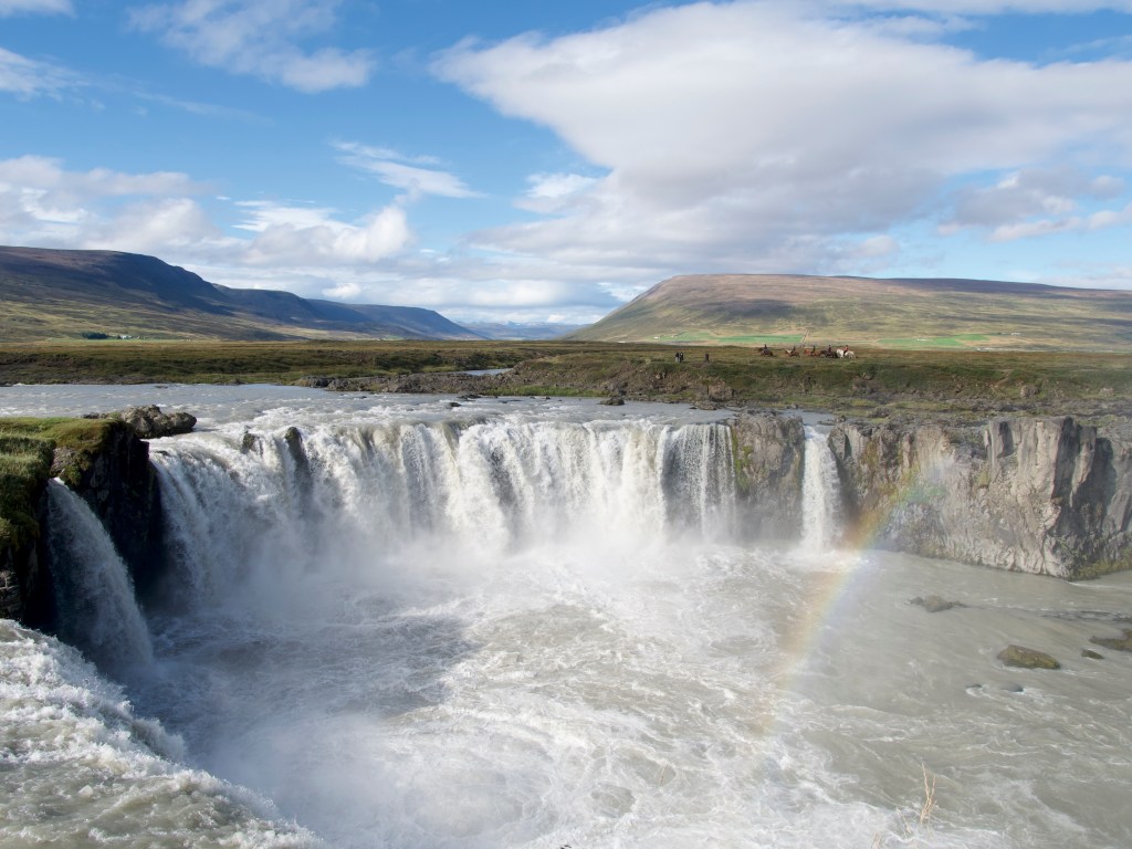 Nous arrivons déjà à la moitié de notre circuit et continuons de parcourir notre côte nord. Je vous conseille de rentrer dans les terres afin de vous approcher de ce qu’on appelle le Cercle de diamant. Ce nom regroupe un ensemble de sites touristiques et naturels tout aussi éblouissants les uns que les autres. En partant d’Akureyri, dirigez-vous vers la chute de Goðafoss, haut lieu de l’histoire médiévale des vikings. Ce cirque naturel de 30m de large voit les eaux bleues s’y déverser et fut témoin d’un changement majeur en Islande. En l’an 1000, le parlement de l’île adopte le christianisme comme religion officielle et, pour montrer l’exemple, le chef de clan de la région de Goðafoss décide de jeter du haut de la chute ses idoles des mythes nordiques. Un symbole fort de l’ère médiévale islandaise.